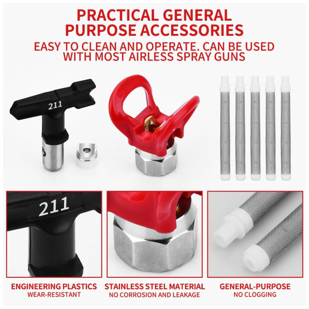 Escolha entre cinco tamanhos diferentes de bico (211, 313, 415, 517, 623) para atender às suas necessidades diárias de pintura. Compartilhe com amigos ou vizinhos para diferentes tipos de pintura, garantindo versatilidade em cada projeto.