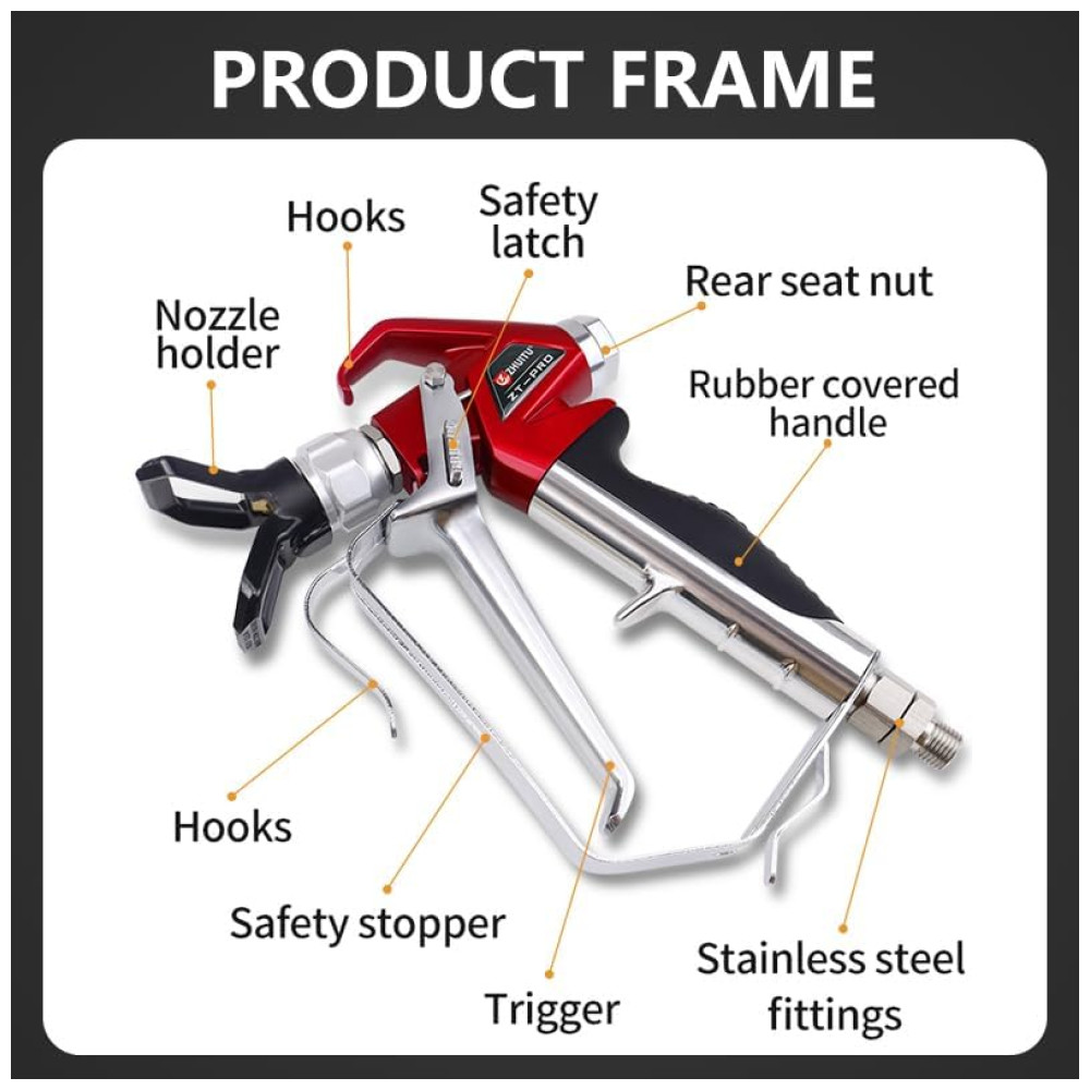 Pistola de Pintura Airless: Alta pressão (27.579 kPa – 4000 PSI) com Bico Reversível 517 Protetor de Bico e Junta GiratóriaZHUITU.