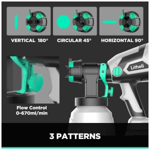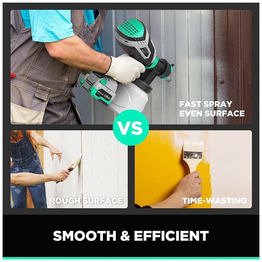 HVLP Tech Este pulverizador ejeta fluxo de ar de maior volume com menor pressão, atomizando a tinta e reduzindo significativamente o excesso de pulverização, gotejamento e desperdício de tinta. Ele oferece um acabamento muito mais fino do que o pincel e o rolo, altamente adequado para projetos de casa, jardim e bricolage em carros, portas, decks, cercas, tetos, móveis, revestimentos de paredes e obras de arte.