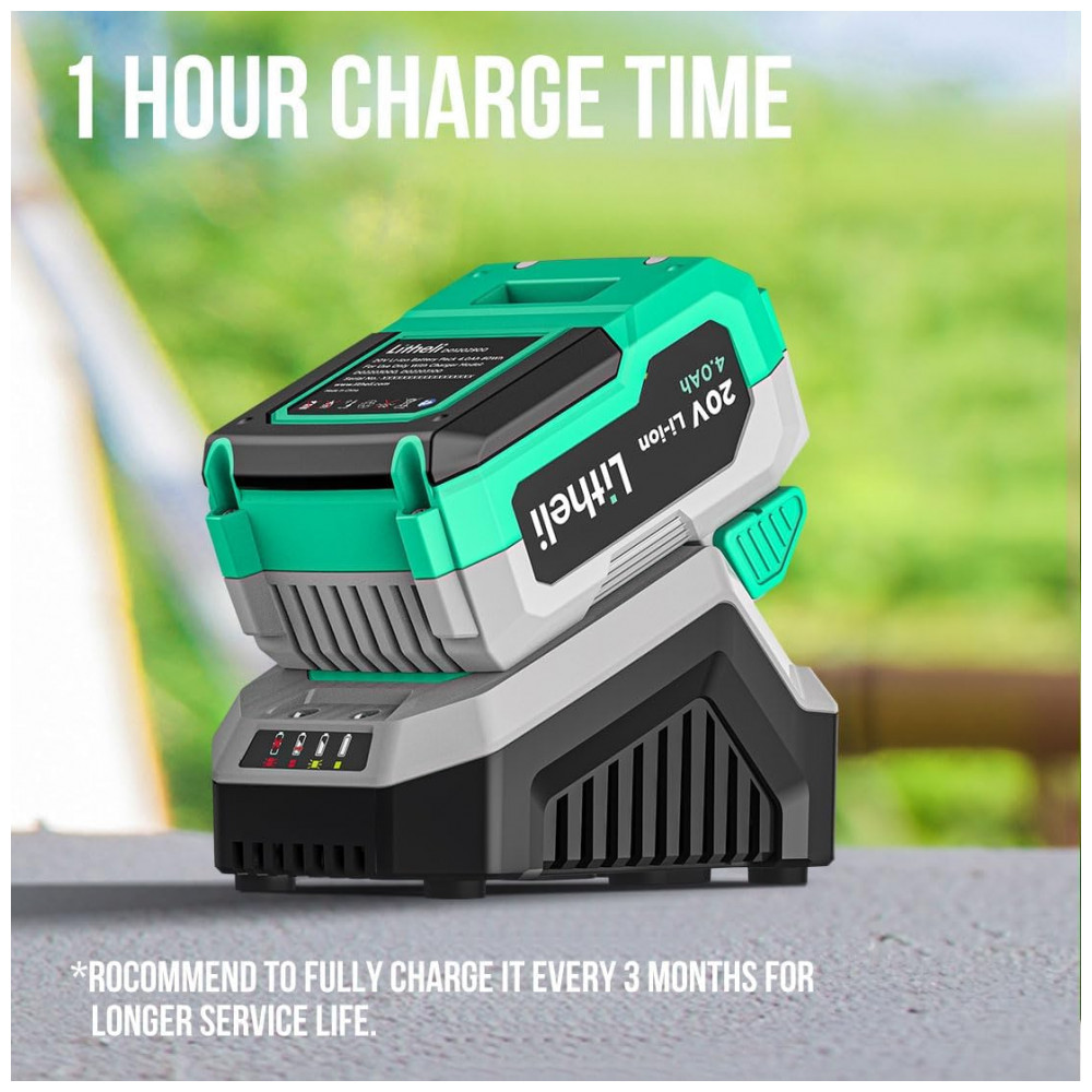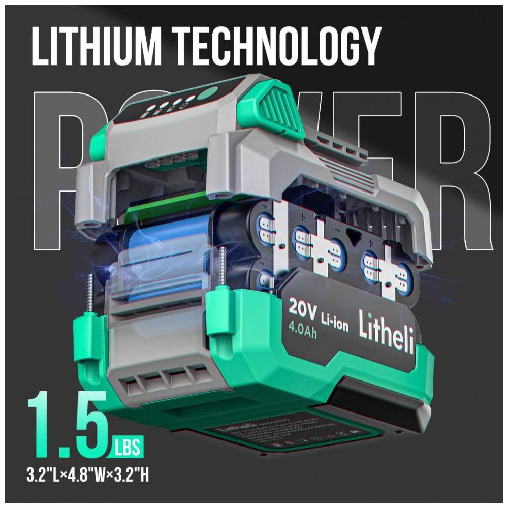 Battery Share A bateria Li ion de 4,0 Ah suporta pulverização suave de até 20 min por carga e funciona com todas as ferramentas elétricas Litheli 20V