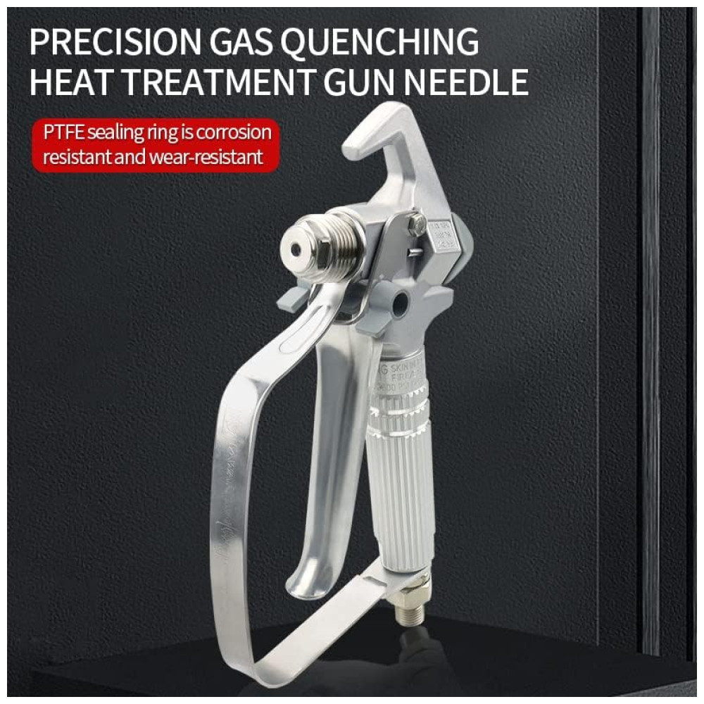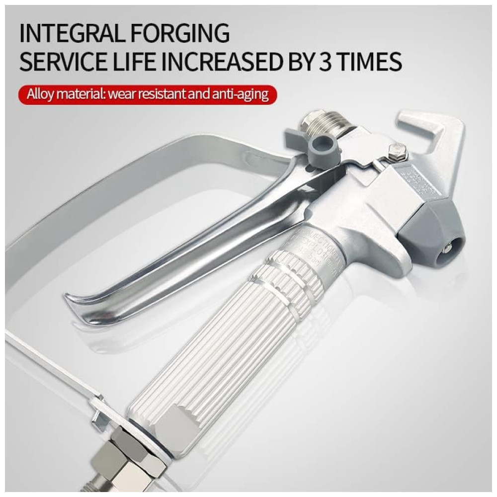 Segurança: A pulverização sem ar é uma técnica de alta pressão. Em caso de explosão, pode causar lesões. A pistola de pintura sem ar oferece um fator de segurança de quatro níveis, com pressão de ruptura quatro vezes maior que a pressão nominal, garantindo sua segurança.
