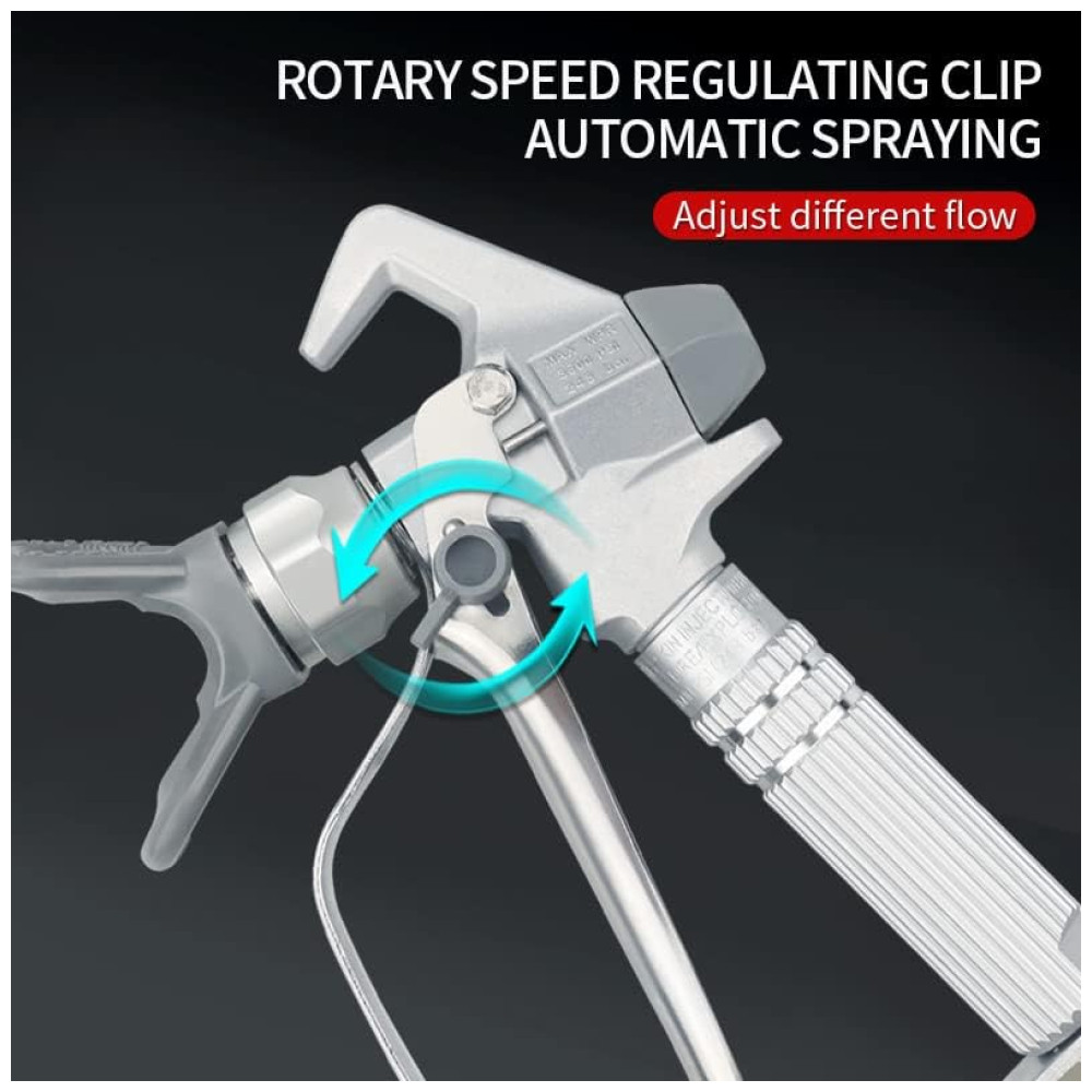 Atomização de Alta Eficiência: A pistola atomiza a tinta de forma eficiente, com uma largura de pulverização de aproximadamente 25 cm. O trinco de segurança acionado pelo polegar permite travar o cabo quando não estiver em uso, garantindo que a tinta não vaze e mantenha o ambiente de trabalho limpo.