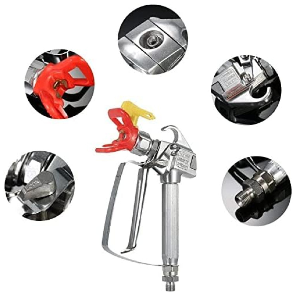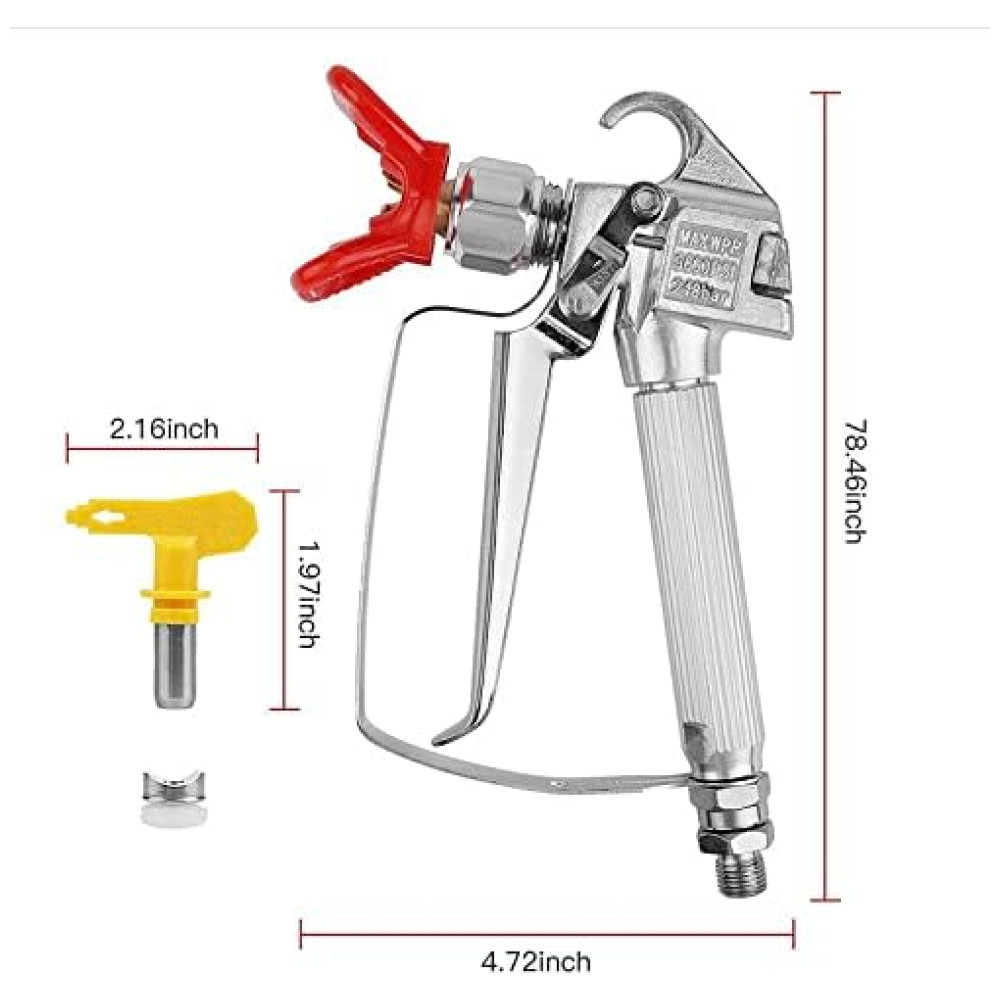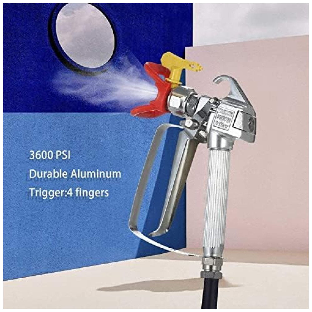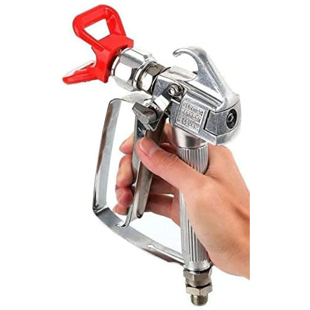 Pistola de Pulverização de Alta Qualidade, sem vazamentos, com bico 517. Compatível com a maioria dos pulverizadores de pintura sem ar. Conexão de entrada com rosca e junta rotativa. Fácil de limpar. Pressão máxima de 24,8 MPa (3600 PSI), gatilho de quatro dedos com puxada suave para maior conforto e controle. Ideal para acabamentos profissionais e projetos de pintura em larga escala.