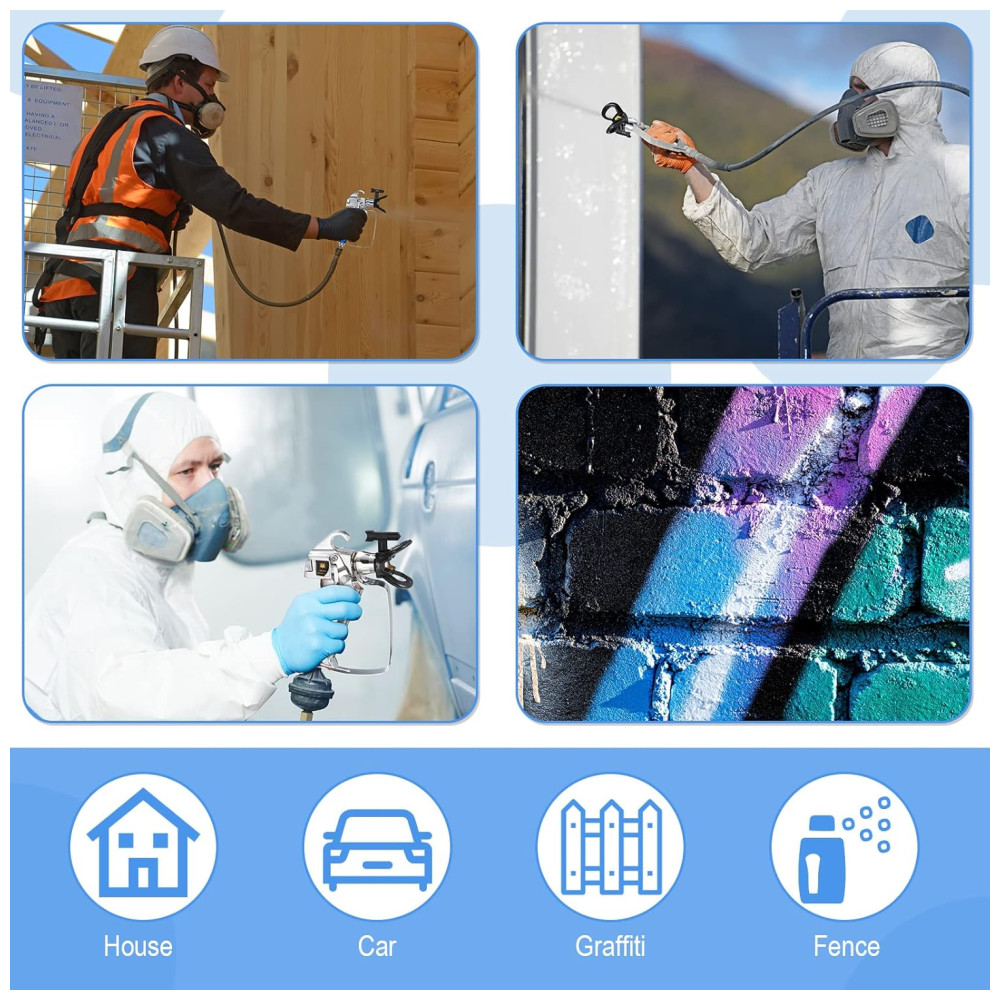 Ampla Aplicação: A pistola pulverizadora airless sem fio é ideal para pintar, pulverizar móveis, tetos, beirais, janelas, portas, cercas, além de aplicações em barcos, pontes, torres, mastros ou decorações industriais com tinta fina.