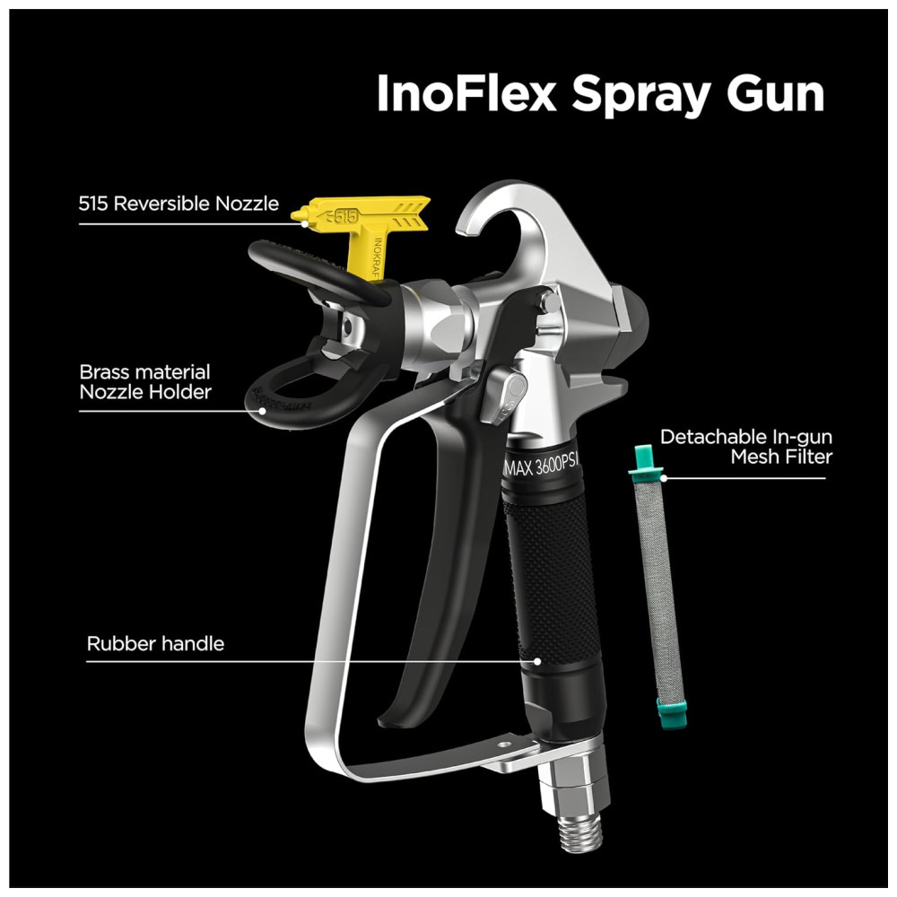 Pistola de Tintura Airless InoKraft: Alta Pressão (24.827 kPa – 3600 PSI) com Bico Reversível 515 para Pintura Externa/Primer com Junta Giratória.
