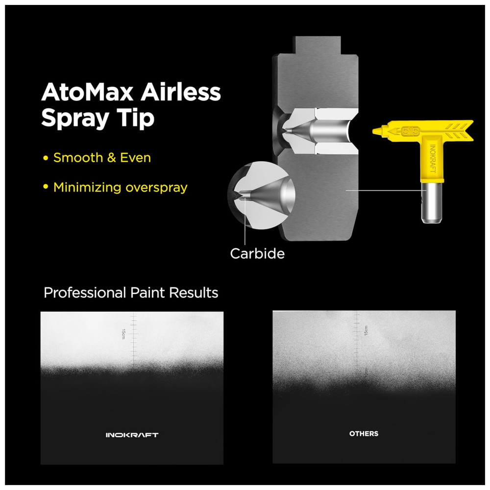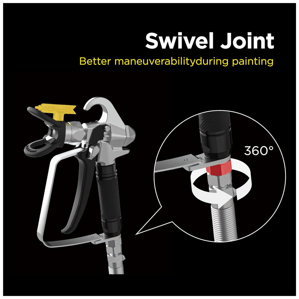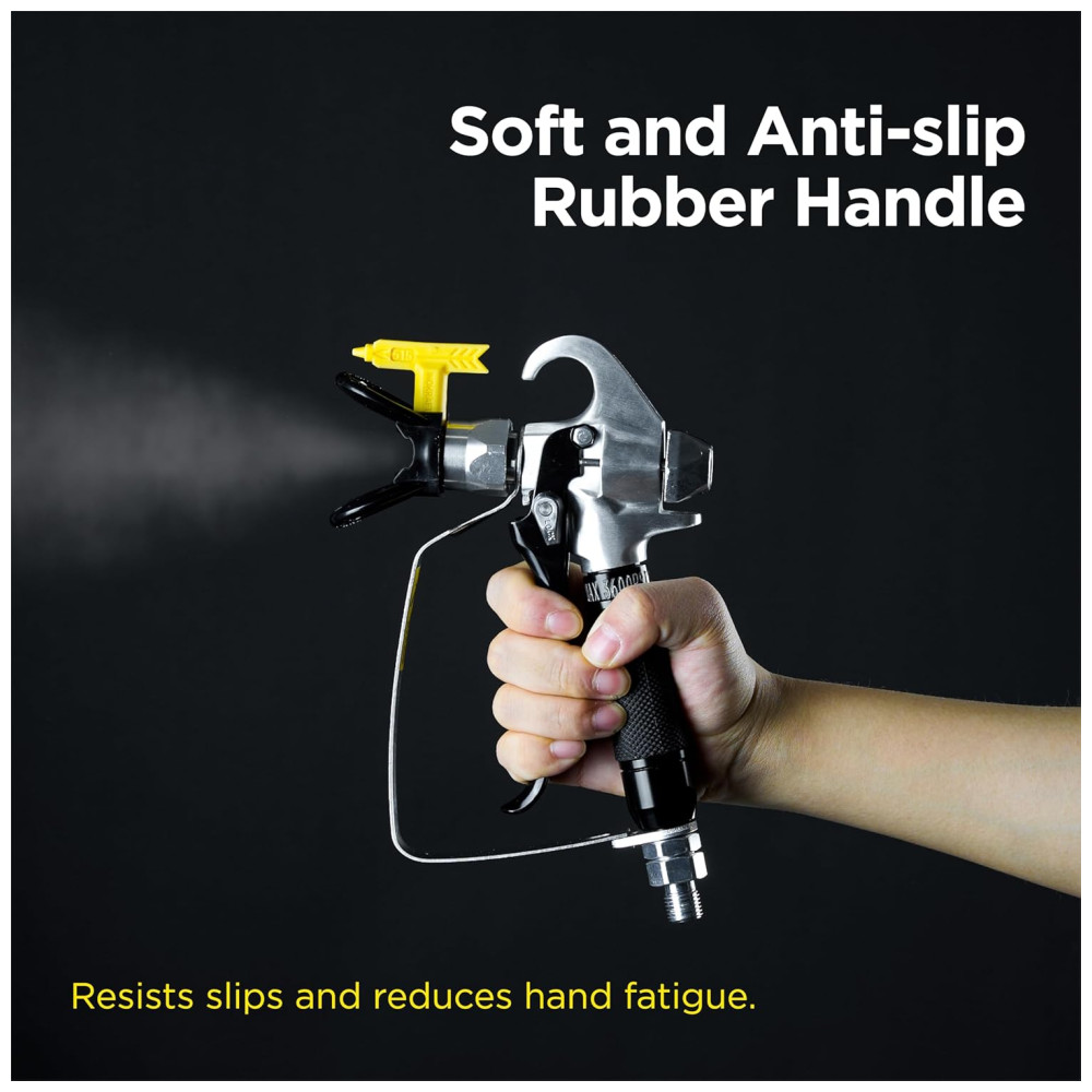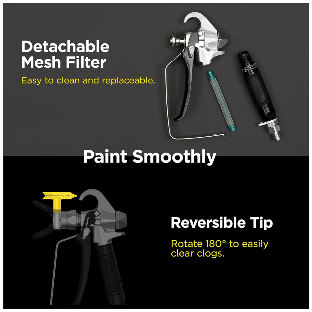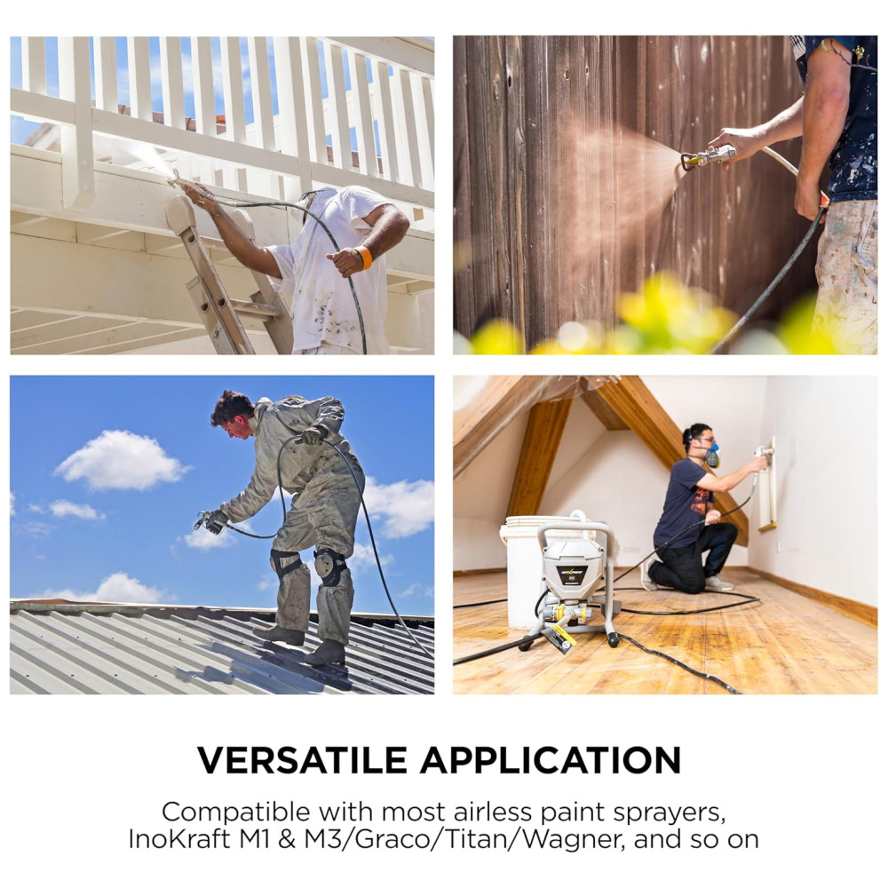 Aplicação versátil compatível com a maioria dos pulverizadores de tinta sem ar, esta pistola de tinta sem fio é perfeita para várias tarefas, incluindo pintura, pulverização, móveis, tetos, molduras de coroa, janelas, portas, cercas e até pinturas intrincadas em indústrias como construção naval, pontes, torres, torres, mastros ou decoração industrial de tinta fina e mais