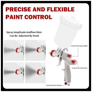 Operação Prática e Eficiente: Fácil de usar com instruções inclusas, ideal para iniciantes e profissionais. A tecnologia LVLP proporciona atomização uniforme e tamanho consistente das partículas, resultando em acabamento com efeito espelhado.