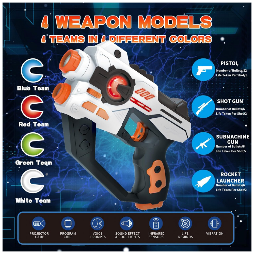 Pistola Infantil com Laser Infravermelho e Projetor para 2 Jogadores Idade de 8 a 12 Anos HISTOYE