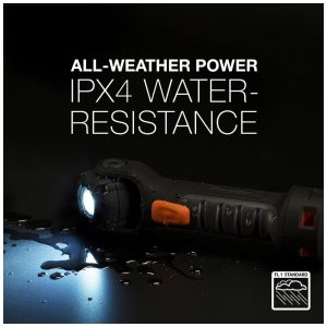 IPX4 RESISTENTE À ÁGUA Pronto para qualquer clima com sua classificação IPX4 resistente à água esta lanterna LED pode suportar respingos pesados, tornando se um grande companheiro de camping, caminhadas, trabalhos de construção e muito mais.