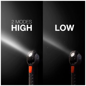 CABEÇA PIVOTANTE Com uma cabeça pivotante de 175 graus que facilmente clica no lugar, está luz é incrivelmente versátil e pode lhe dar luz direcional e brilhante para quase qualquer atividade ou trabalho