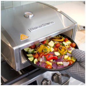 Pizza Box fogão a gás com forno superior aço inoxidável BAKERSTONE OS ABDXX O SSS Cinza