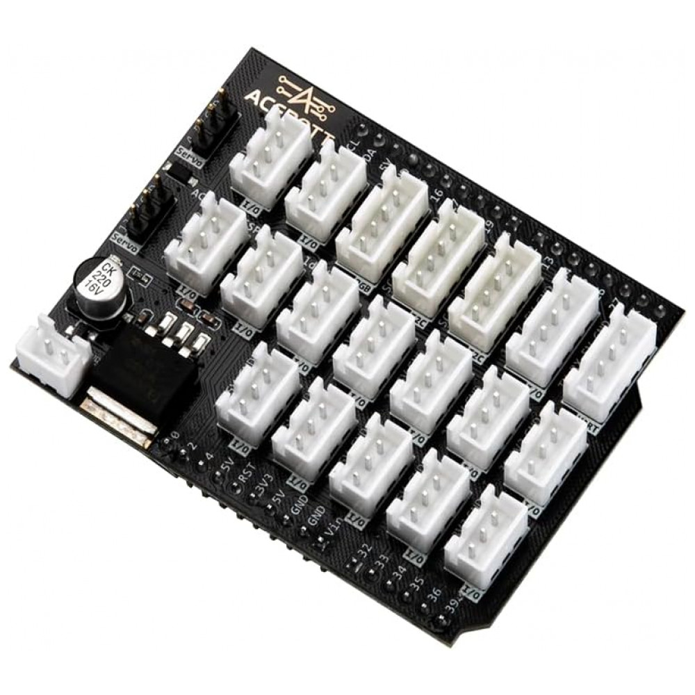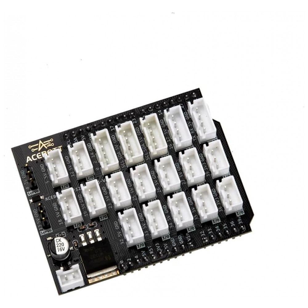 A ACEBOTT é uma marca especializada em placas de desenvolvimento, shields e kits de robótica e IoT voltados ao ensino de eletrônica e programação para estudantes e makers. A placa de expansão QA017 é fabricada pela ACEBOTT e foi projetada para integração direta com a controladora ESP32‑Max‑V3.0, oferecendo um conjunto completo de conexões em um formato compacto.