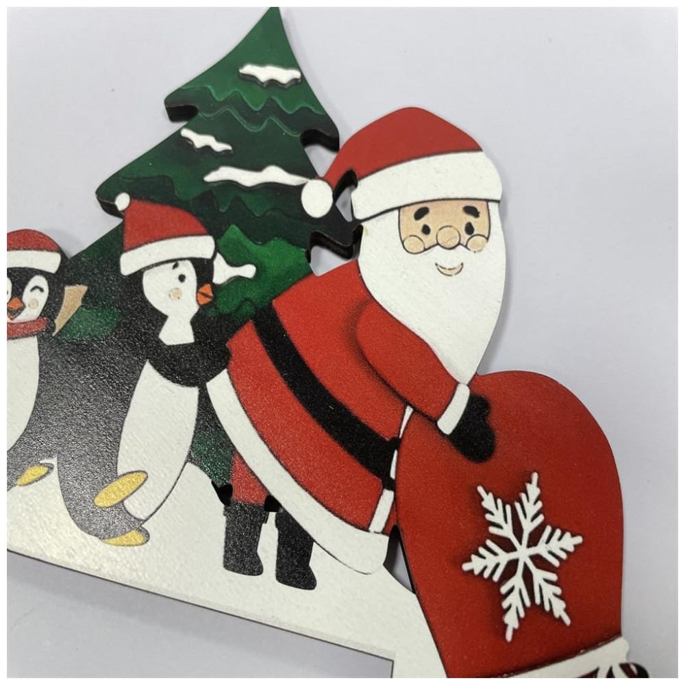 Placa Decorativa Natal Sanmtang Pinguim Madeira 20x12cm Para Porta Janela ou Parede 60g Ornamento Festivo Enfeite Corner Sign 2024