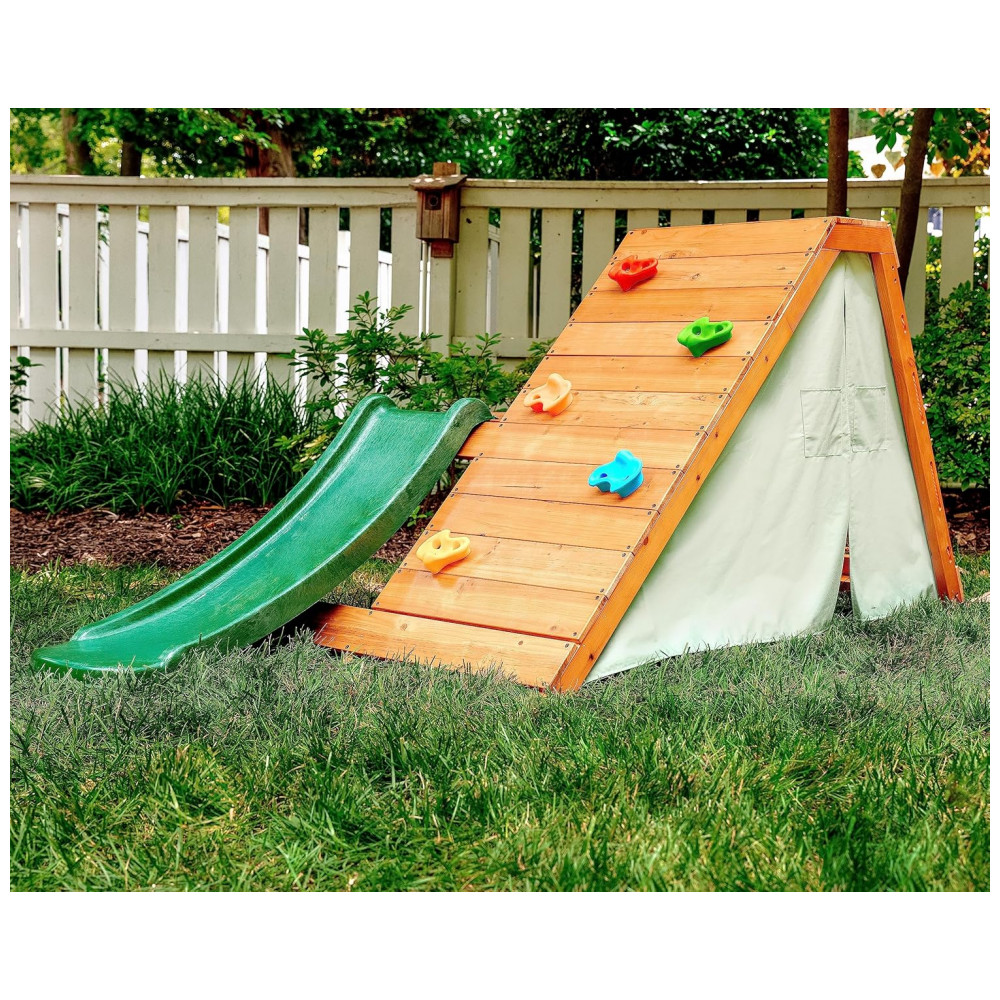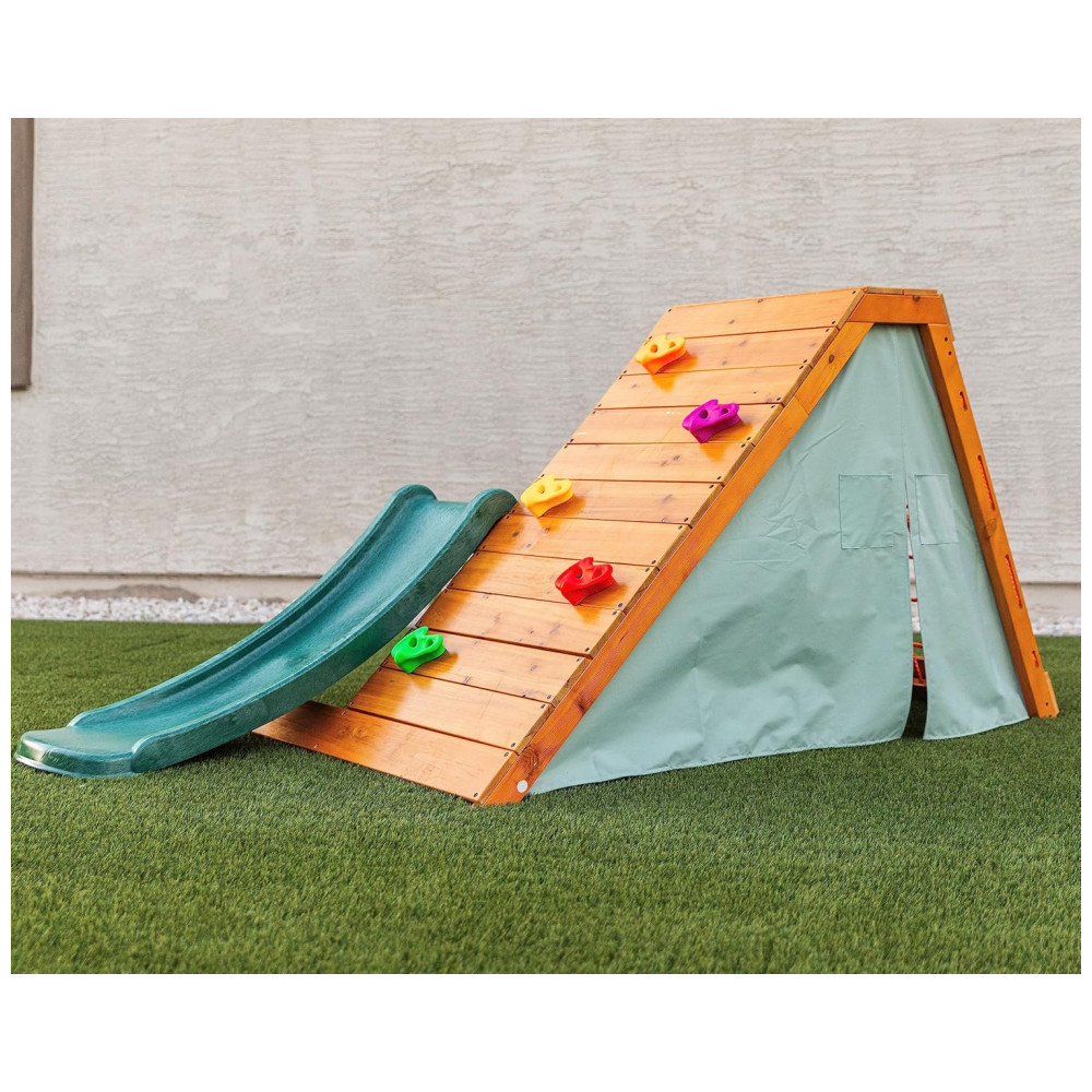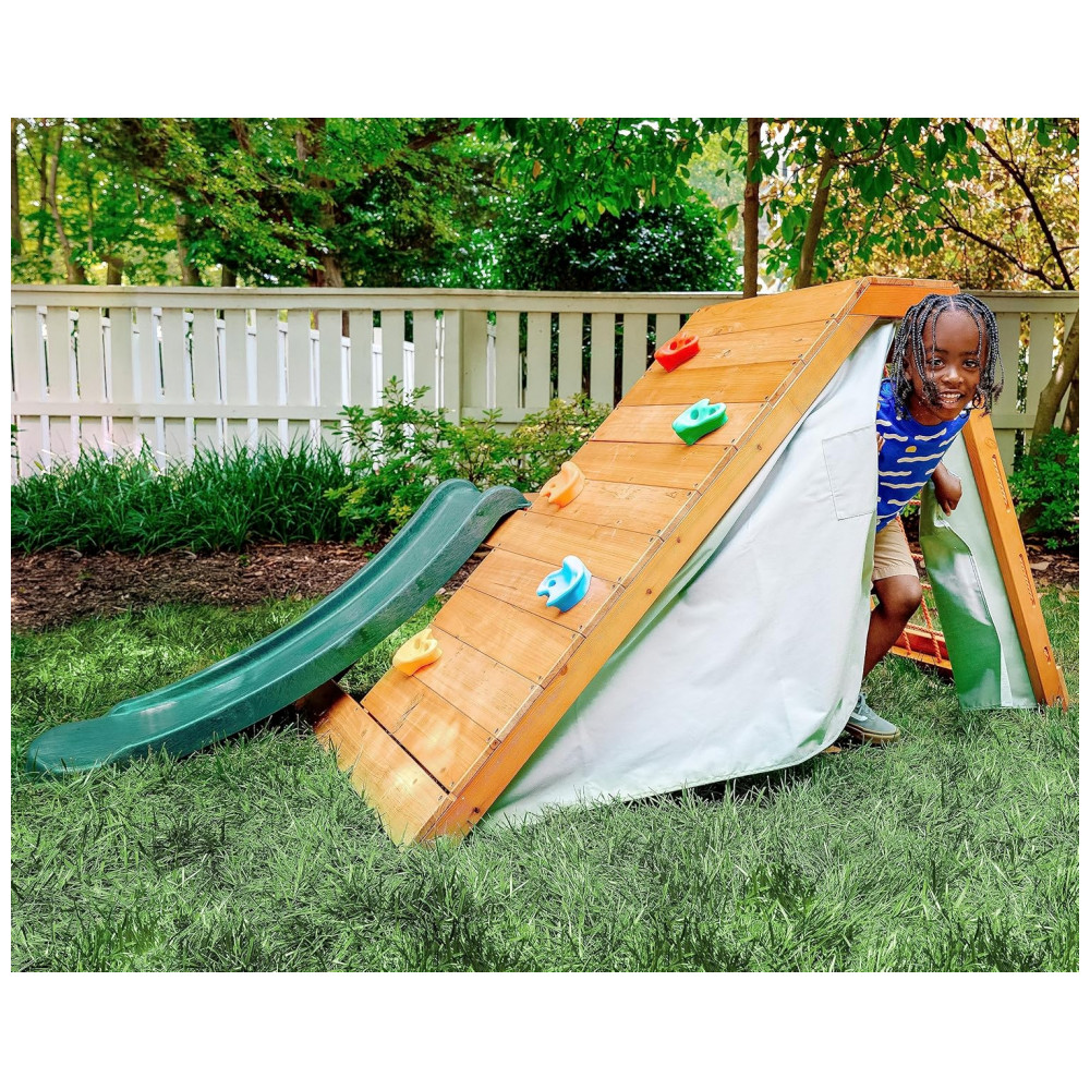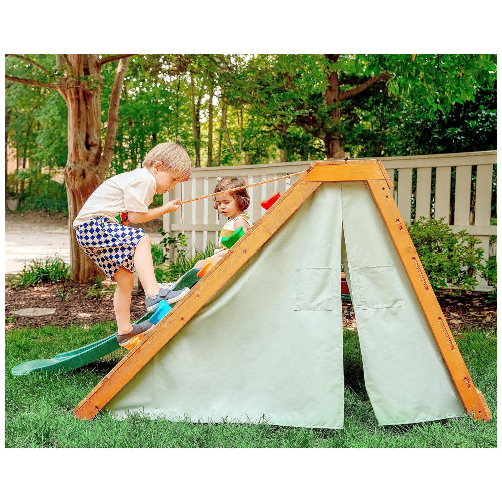 Playground com Parede de Escalada Avenlur Palm 5 em 1 para Quintal e Interior com Escada Parede de Escalada Escorregador de 12m Tenda.