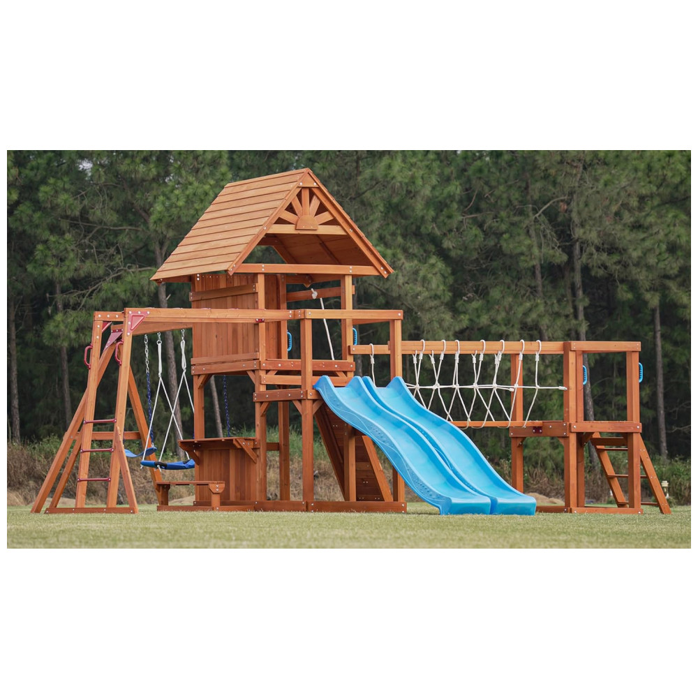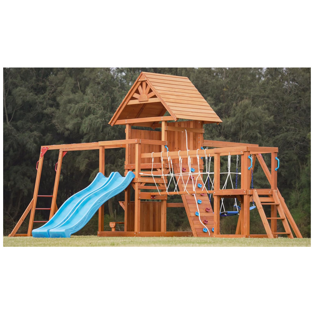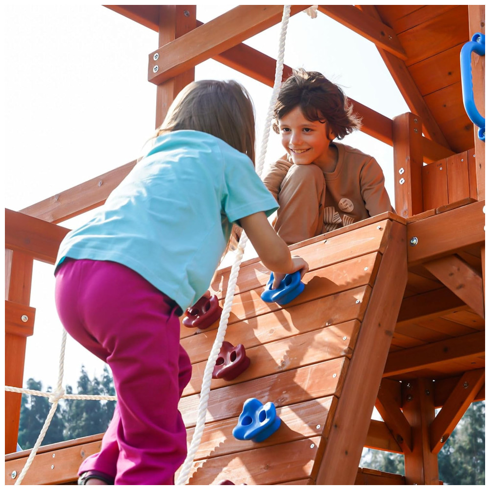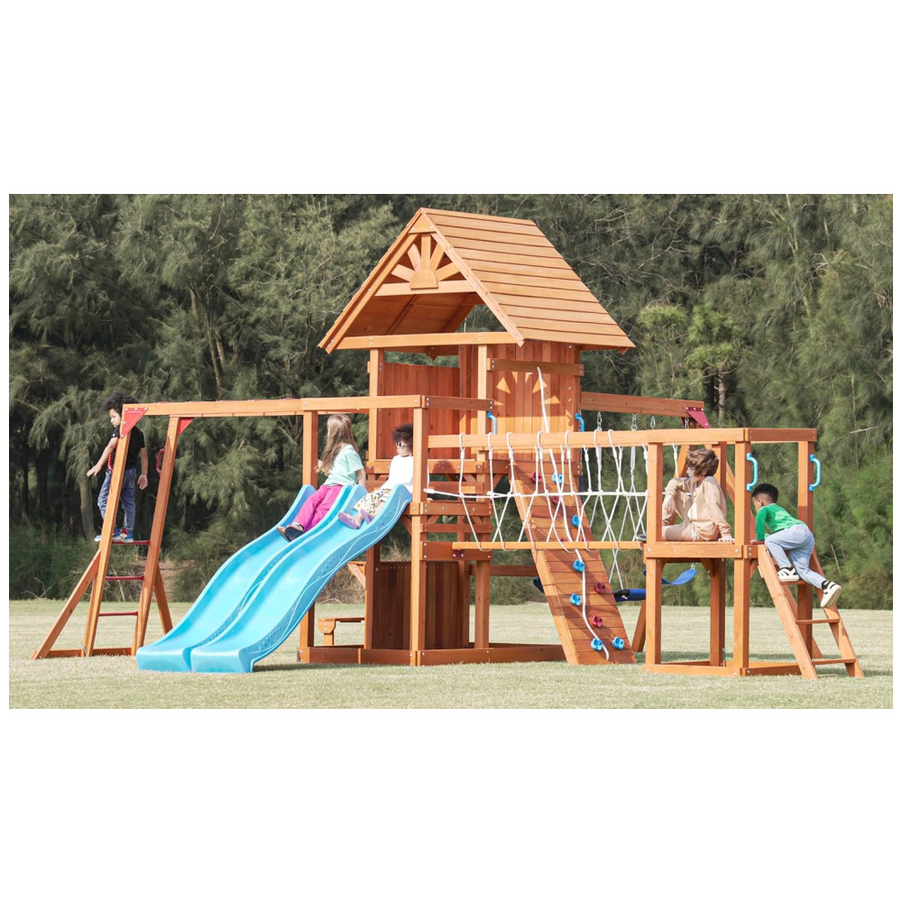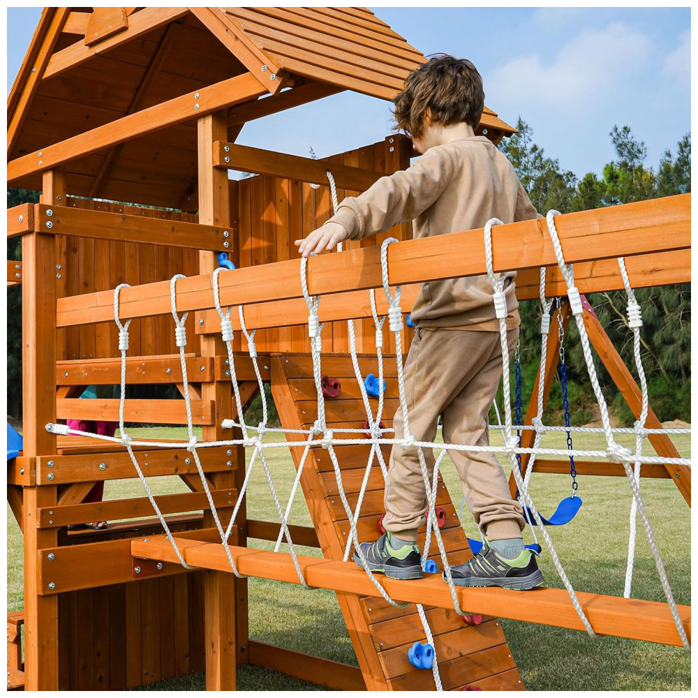 Madeira Cedro Premium: Fabricado com madeira de cedro de alta qualidade, o playground é resistente à água, corrosão e rachaduras, adequado para todas as condições climáticas. Antes de comprar, verifique se seu quintal acomoda o produto.