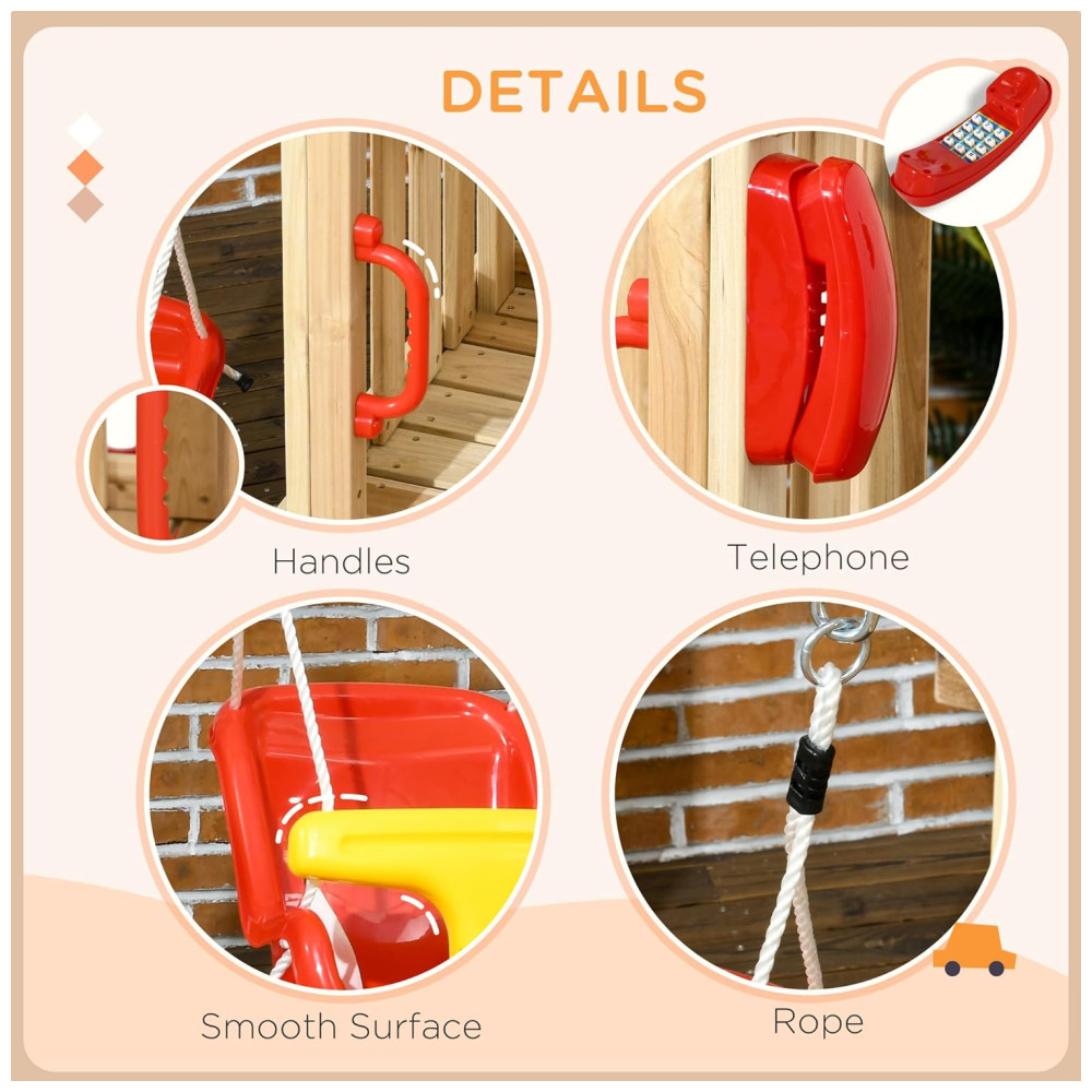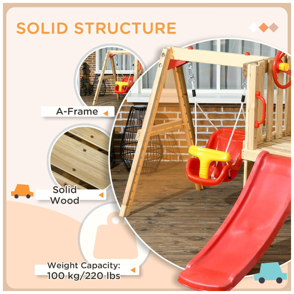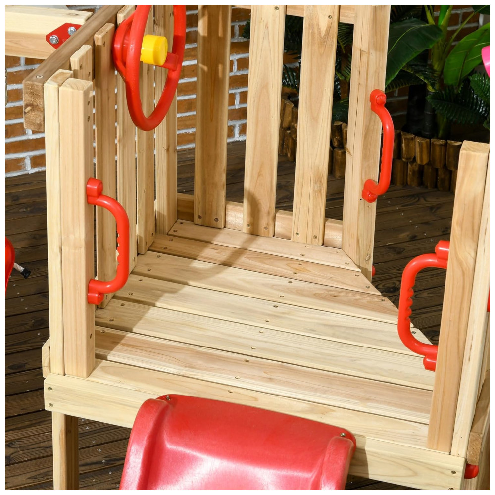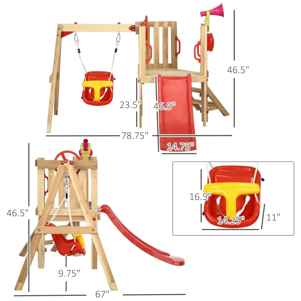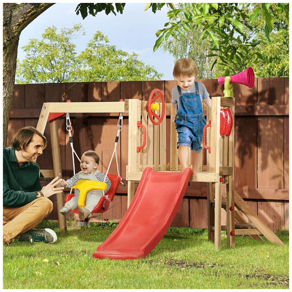 Playground Infantil de Madeira com Assento de Balanço para Bebês Roda do Capitão Buzina e Escorregador para Cranças de 1 a 4 Anos Outsunny Vermelho