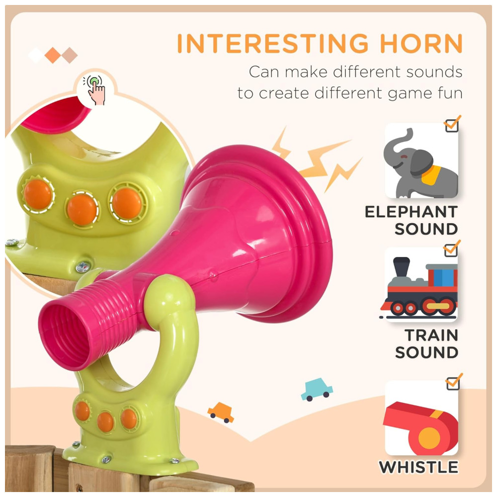 Buzina Divertida:A buzina do balanço possui três botões de som diferentes, que emitem sons de elefante, apito e trem, tornando a brincadeira ainda mais divertida e permitindo que as crianças criem suas próprias histórias e estilos de brincadeira.