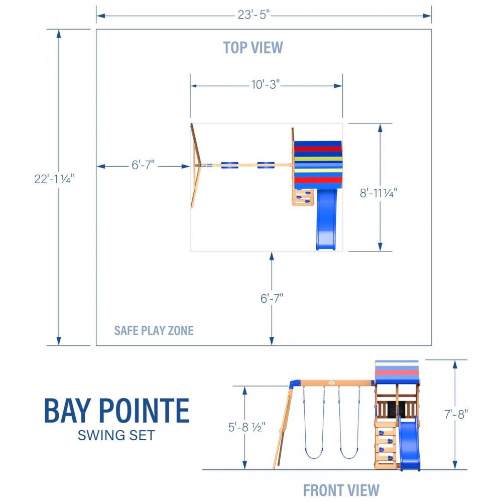 O Bay Pointe é o playground ideal para crianças pequenas explorarem, balançarem e brincarem de forma segura e cheia de imaginação no conforto do seu quintal.