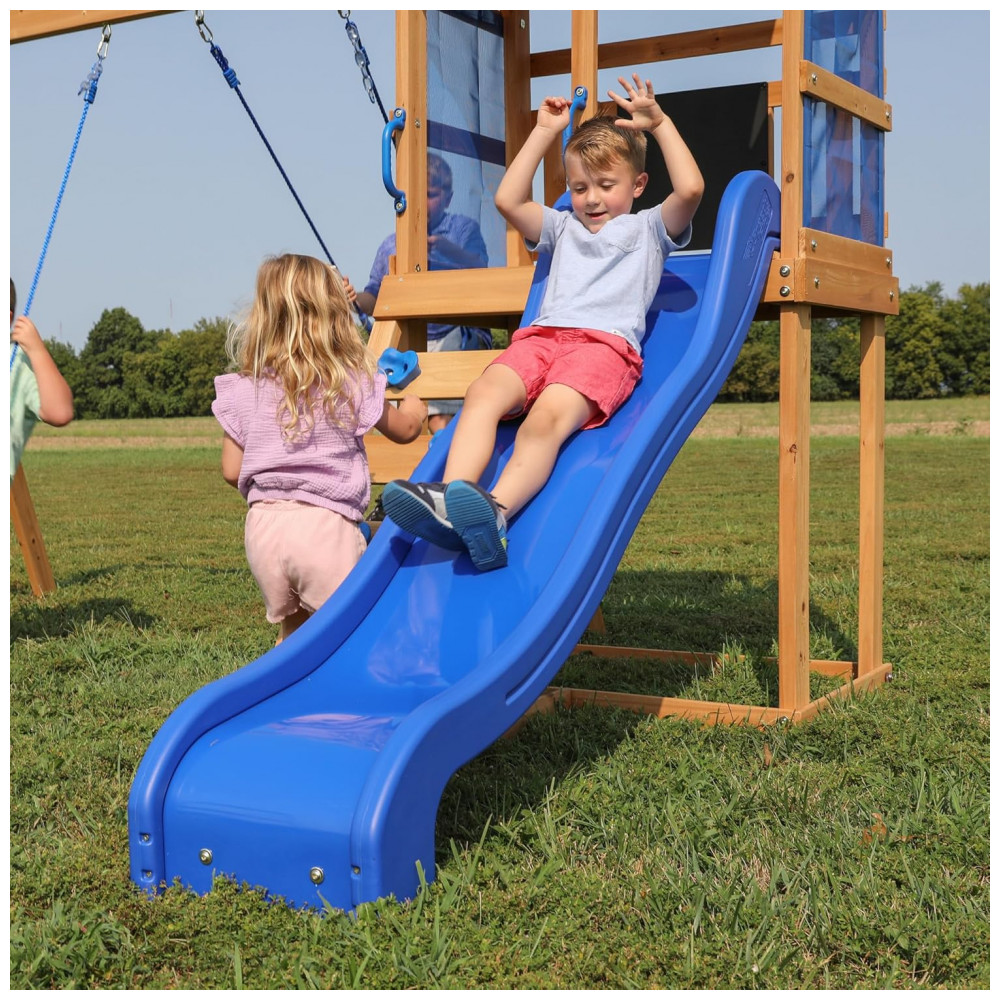 Se seus pequenos estão procurando uma aventura de playground no quintal, o balanço de madeira Bay Pointe da Backyard Discovery é a escolha perfeita! Compacto em tamanho, mas grande em diversão, este conjunto é ideal para crianças de 3 a 6 anos que querem se divertir balançando nos balanços de cinto ou descendo rapidamente pelo escorregador rápido de 1,83 metros (6 pés).