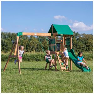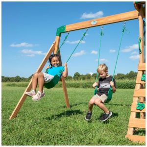 Se seus pequenos estão procurando uma aventura de playground no quintal, o balanço de madeira Bay Pointe da Backyard Discovery é a escolha perfeita! Compacto em tamanho, mas grande em diversão, este conjunto é ideal para crianças de 3 a 6 anos que querem se divertir balançando nos balanços de cinto ou descendo rapidamente pelo escorregador rápido de 1,83 metros (6 pés).