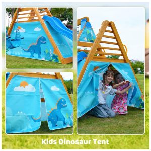 Barraca de Acampamento com Tema de Dinossauro para Crianças: Feita com tecido respirável e impermeável, nossa barraca de acampamento com tema de dinossauro cria um ambiente aconchegante e seguro para as brincadeiras imaginativas dos pequenos. A barraca é irresistível para meninos e meninas, proporcionando-lhes uma sensação de privacidade e aventura, perfeita para longas horas de diversão.