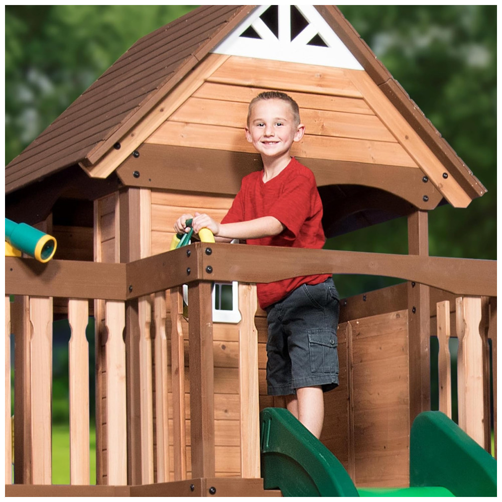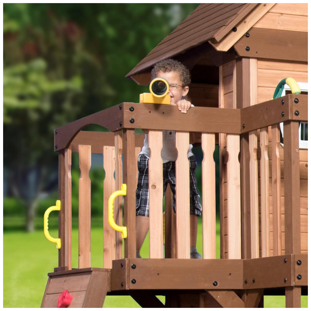 No clube superior, as crianças podem explorar o telescópio e volante, enquanto desfrutam da vista de sua varanda e deck. Para chegar lá, há a parede de escalada desafiadora e uma escada de entrada plana, proporcionando uma forma segura e divertida de escalar.
