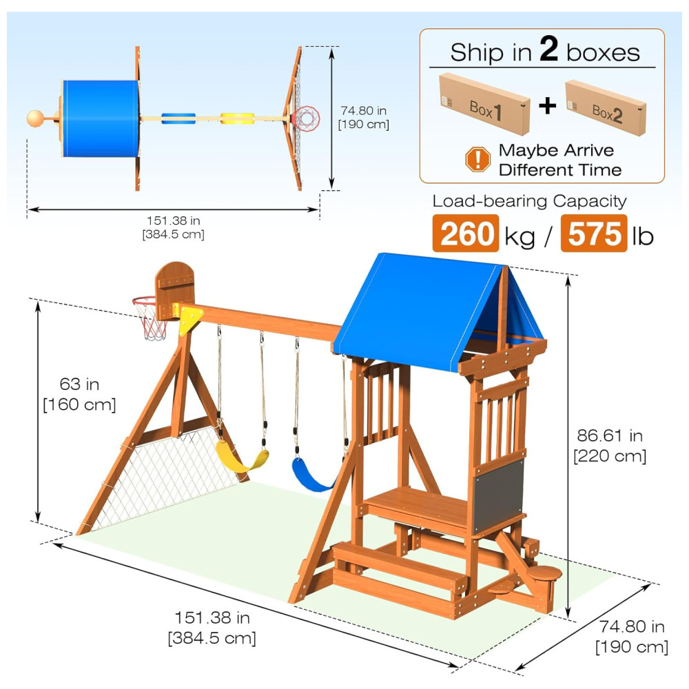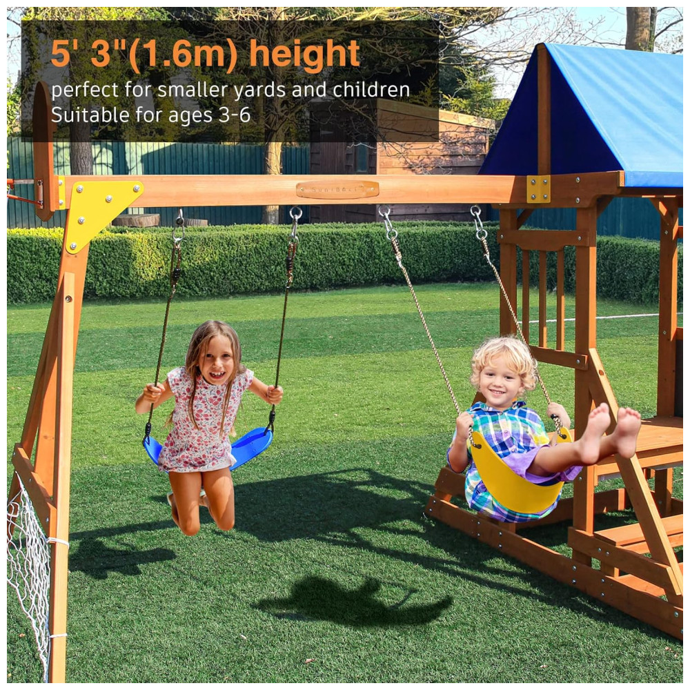 Ideal para Crianças de 2 a 6 Anos: Este conjunto de balanço foi projetado especialmente para crianças de 2 a 6 anos. Com uma altura de 1,6 metros, ele oferece uma experiência de balanço segura e adequada para crianças mais novas. Perfeito para iniciantes, é ideal para quintais menores, ocupando um espaço de apenas 7,9 x 6 metros. As crianças podem aproveitar a diversão com total segurança.
