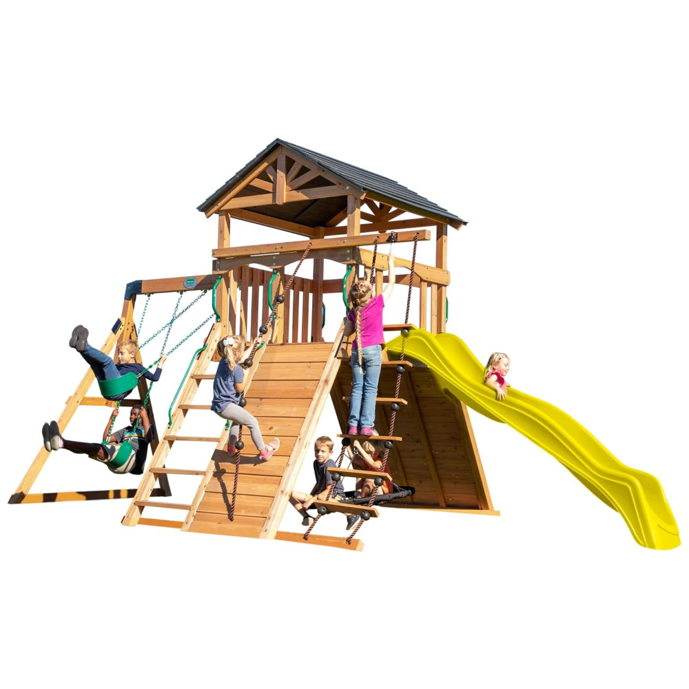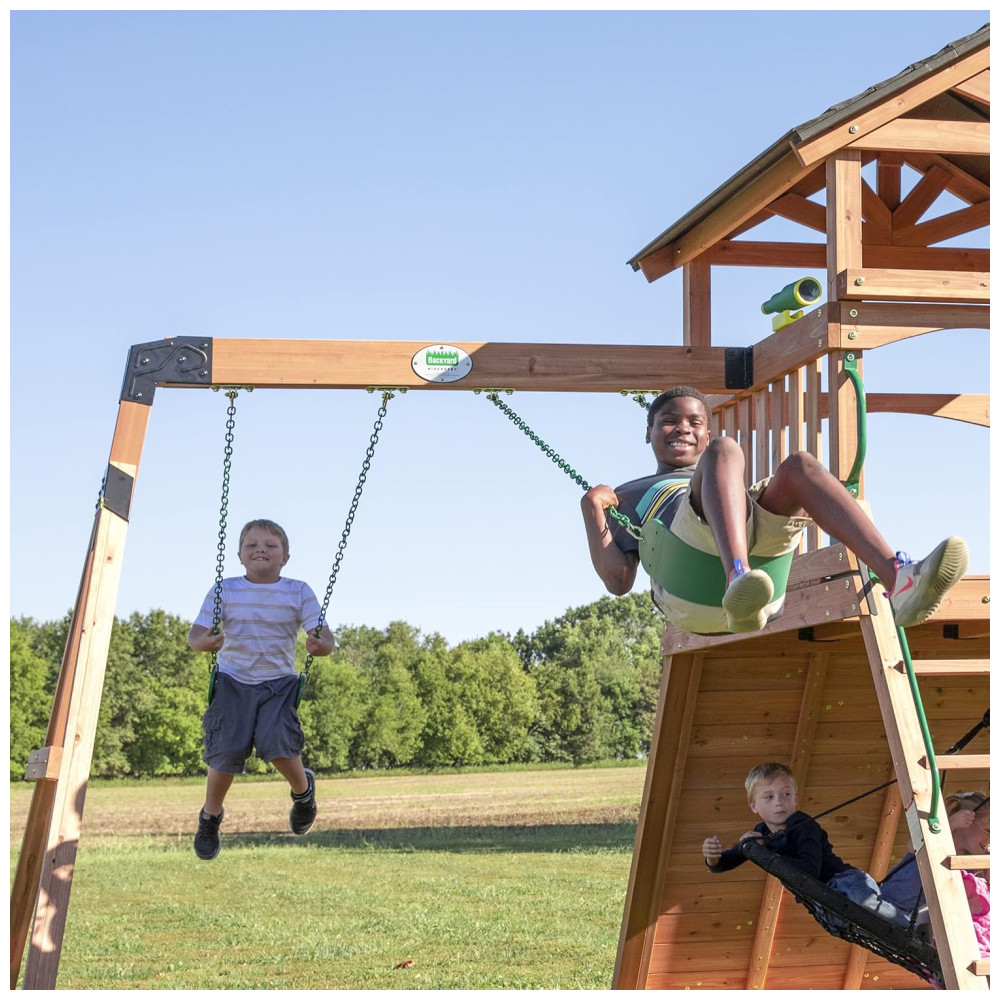 Transforme o seu quintal em um verdadeiro parque de aventuras com o conjunto de madeira Endeavor da Backyard Discovery. Projetado para proporcionar horas de diversão, este conjunto oferece uma experiência única de brincadeiras, desafiando as crianças a explorar e se divertir com segurança.