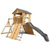 Playground Infantil de Madeira com Parede de Escalada Escorregador 2 Balanços de Cinto e 1 Balanço de Teia Backyard Discovery Cinza