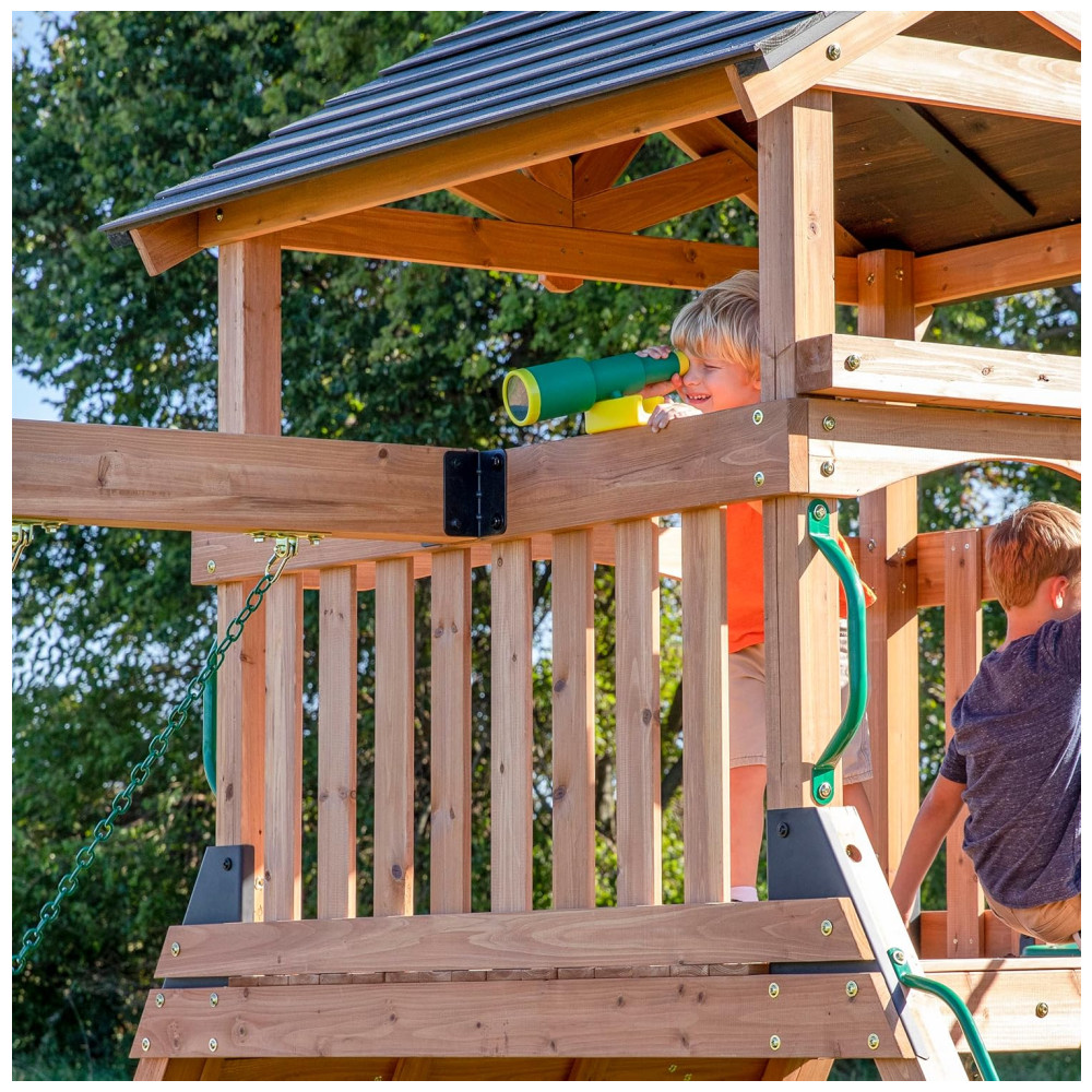 Com escadas planas de degraus largos e alças de segurança extra longas, este conjunto oferece fácil acesso para crianças de todas as idades. O Endeavor também é projetado com suportes de aço reforçados e atende aos padrões ASTM, garantindo máxima segurança durante a diversão.