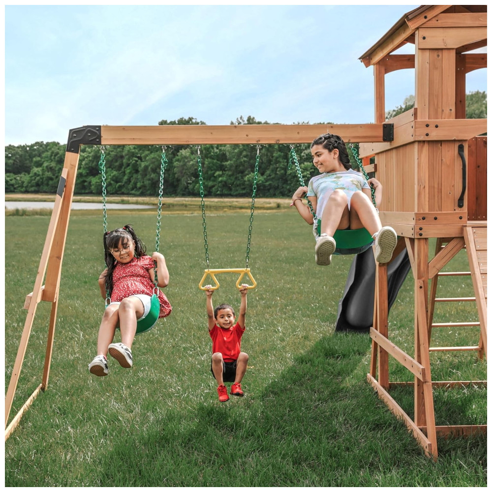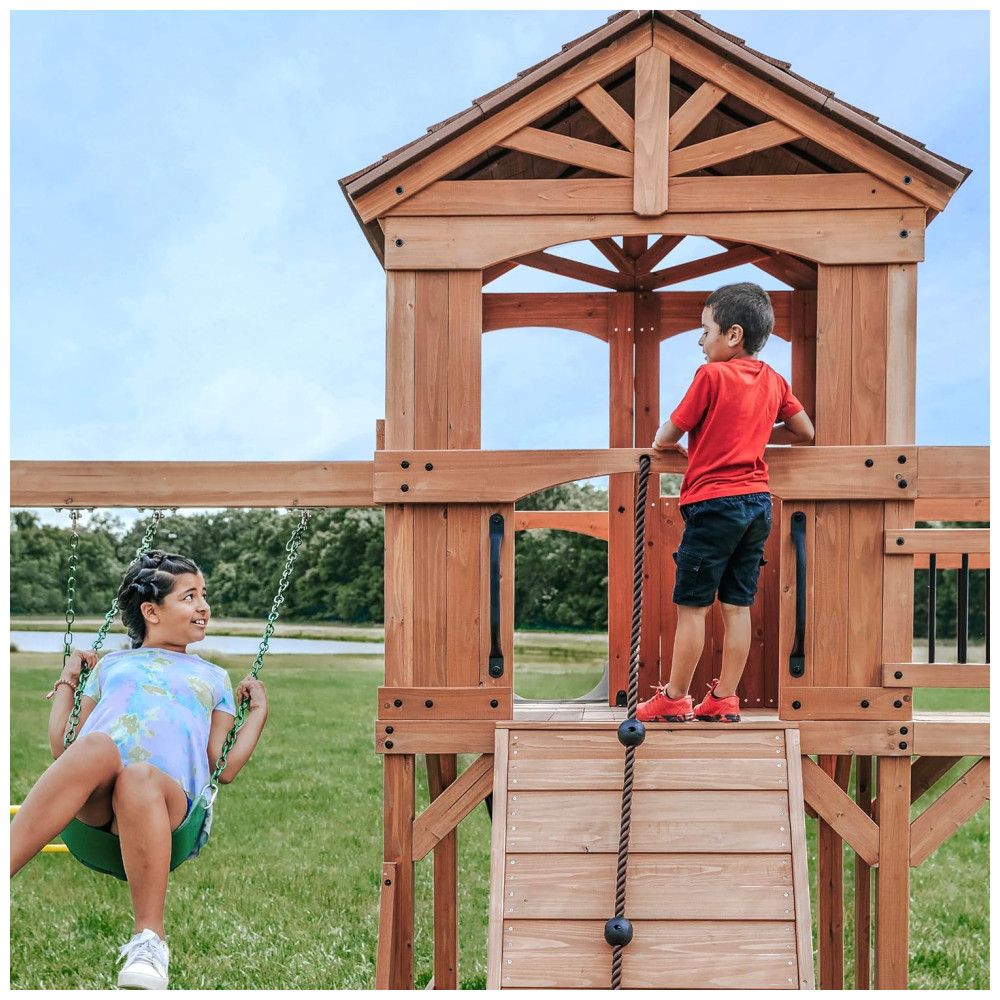O conjunto de madeira Endeavor da Backyard Discovery é o playground perfeito para transformar o seu quintal em um verdadeiro parque de aventuras. Com recursos incríveis e materiais duráveis, ele foi projetado para proporcionar horas de diversão e desenvolvimento motor para crianças de todas as idades.