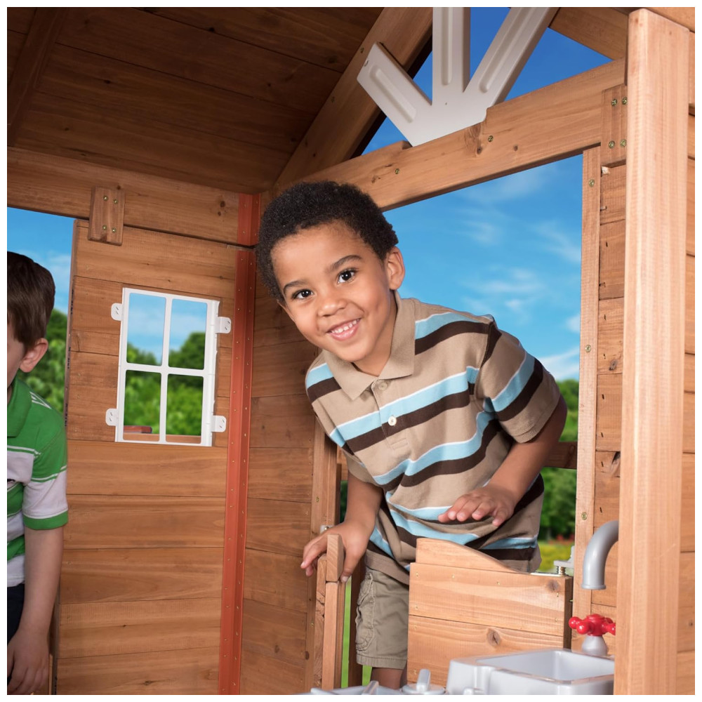 A Casa de Brinquedo de Cedro Scenic Heights é a escolha perfeita para as crianças que adoram brincar de casinha. Feita em madeira de cedro, ela conta com diversos detalhes que tornam a brincadeira ainda mais divertida e completa. A casa possui: