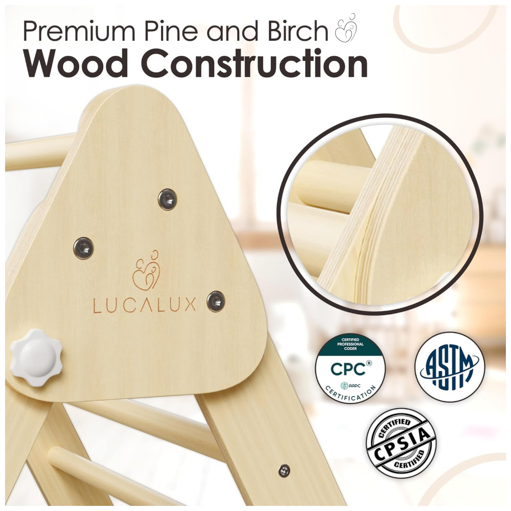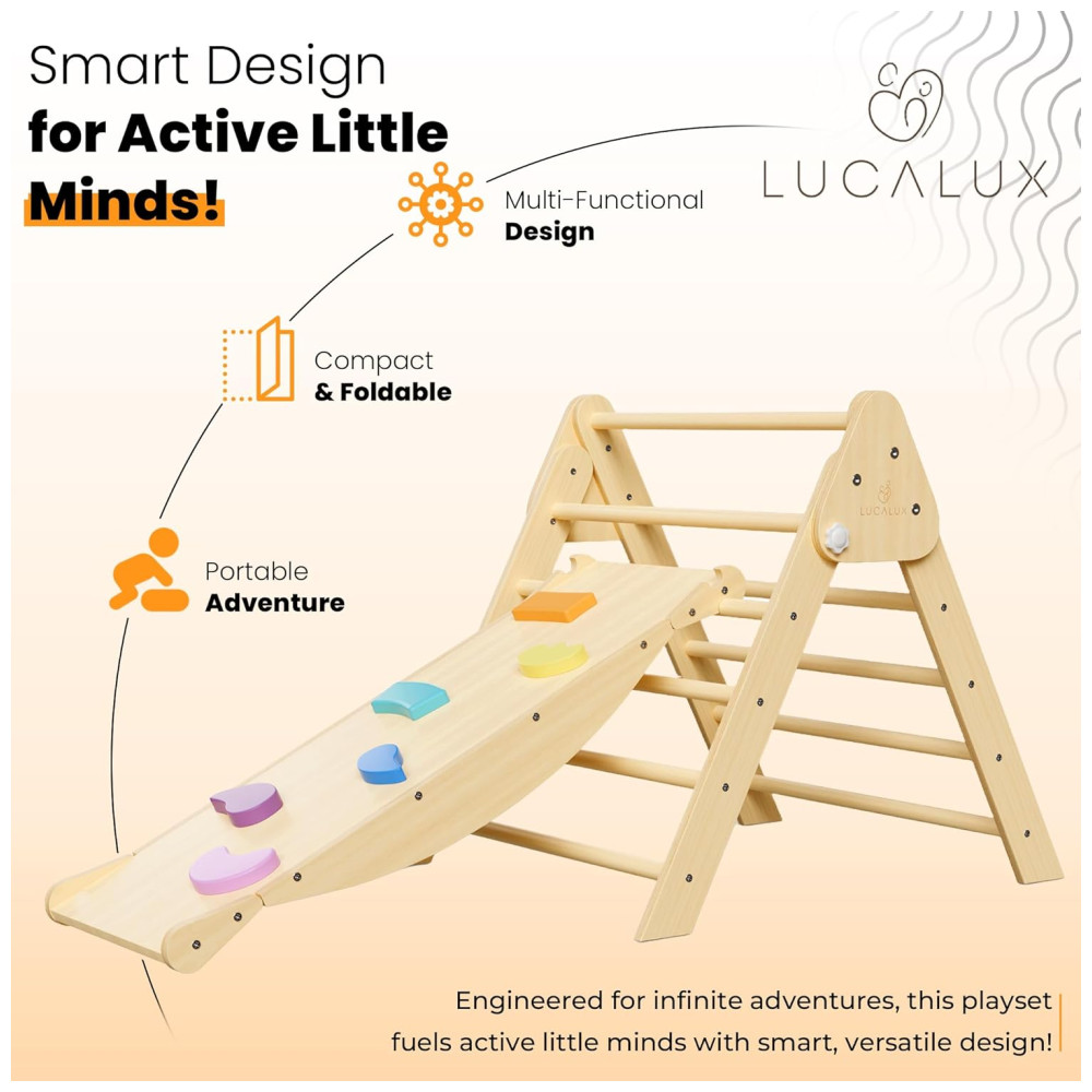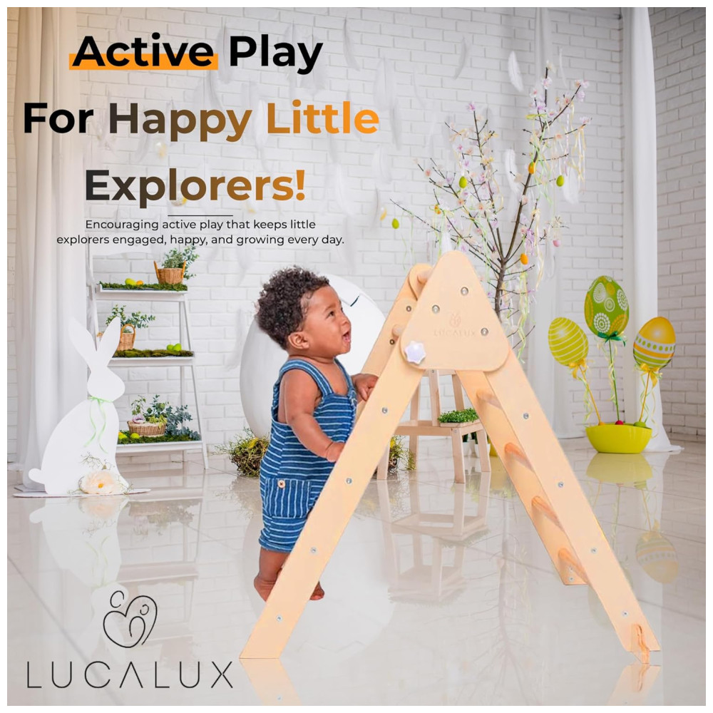 Playground Lucalux Brinquedo de Escalada 6 em 1 Infantil Indoor – Conjunto Montessori Seguro com Triângulo Pikler Dobrável Escada Escalada.
