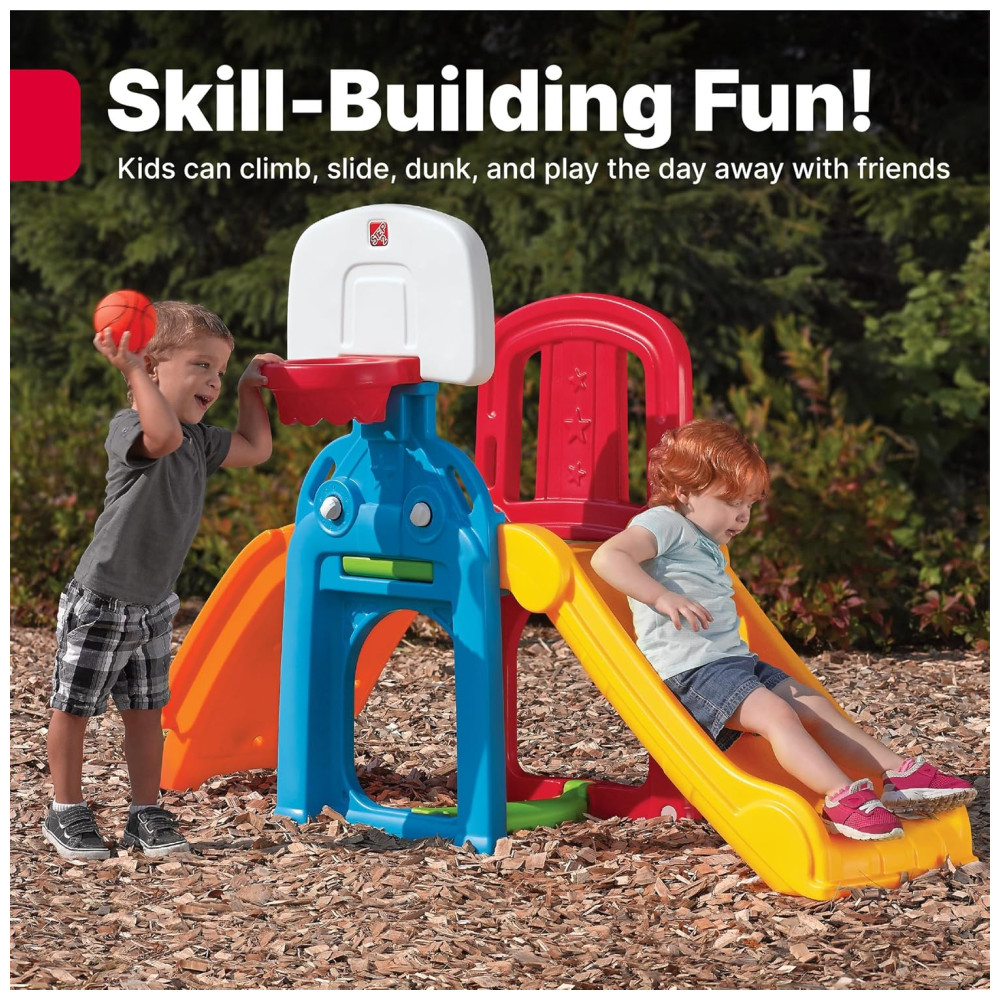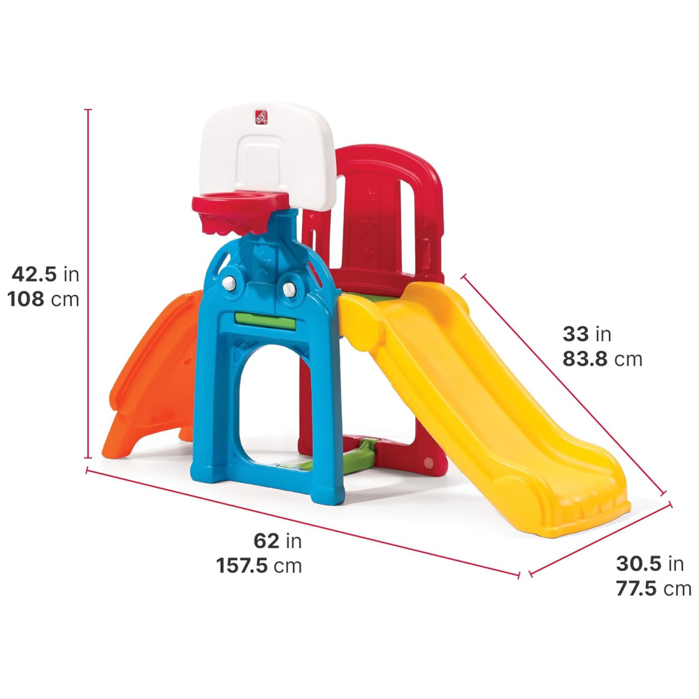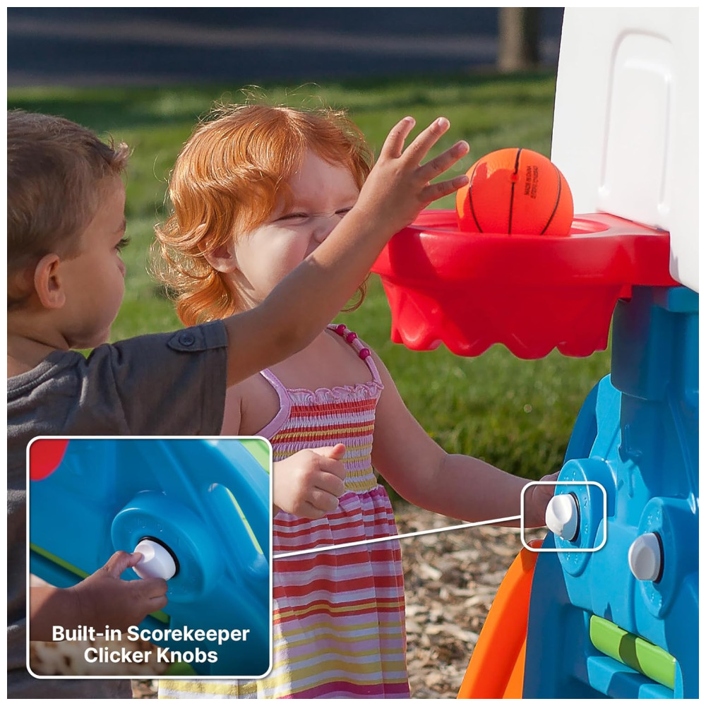 Playset Infantil Para Ambientes Internos e Externos Com Escorregador Parede de Escalada Cesta de Basquete e Jungle Gym – Para Crianças de 2 a 6 Anos Step2