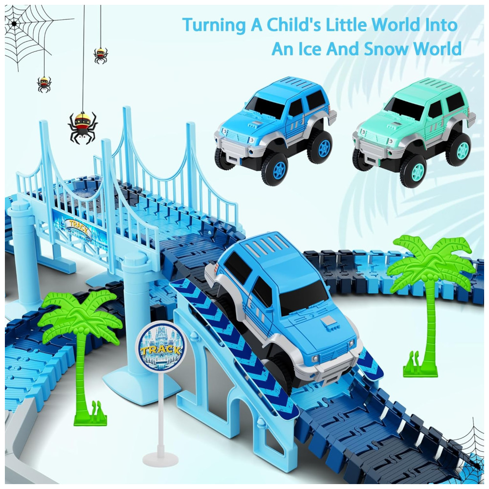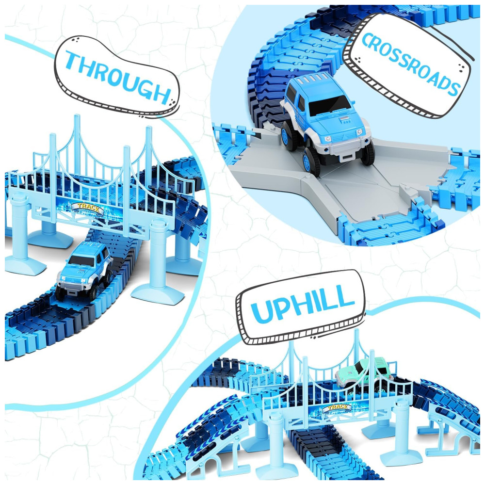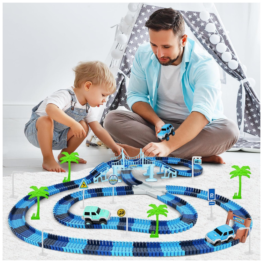 Playset Pista de Corrida Flexível com 269 Peças Inclui 2 Carros Idade Recomendada 3 a 6 Anos Toyk Azul