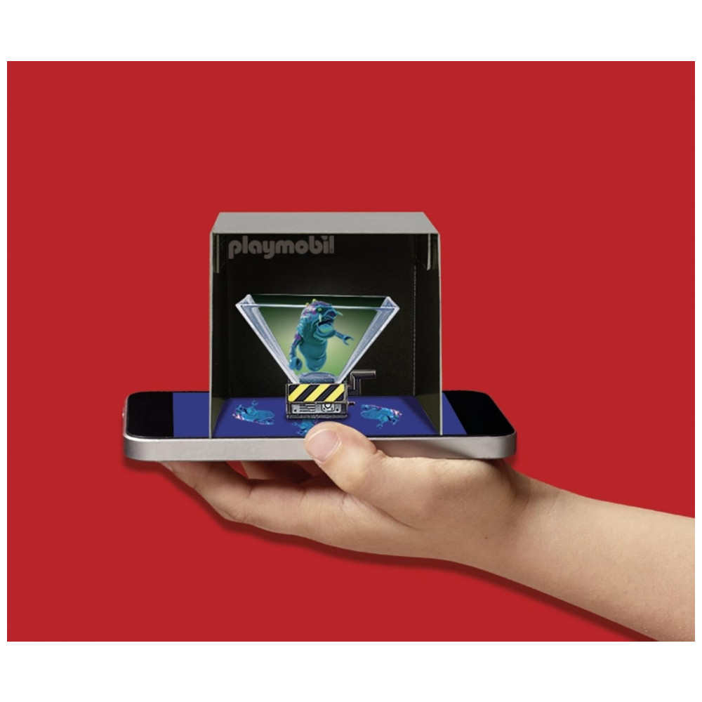 O conjunto é compatível com aplicativo gratuito Playmobil, que pode projetar diferentes figuras de fantasmas no cone holográfico da armadilha para ampliar a experiência de brincadeira. O produto é indicado para crianças a partir de 6 anos, com foco em cenas de ação e imaginação em torno do universo Ghostbusters.