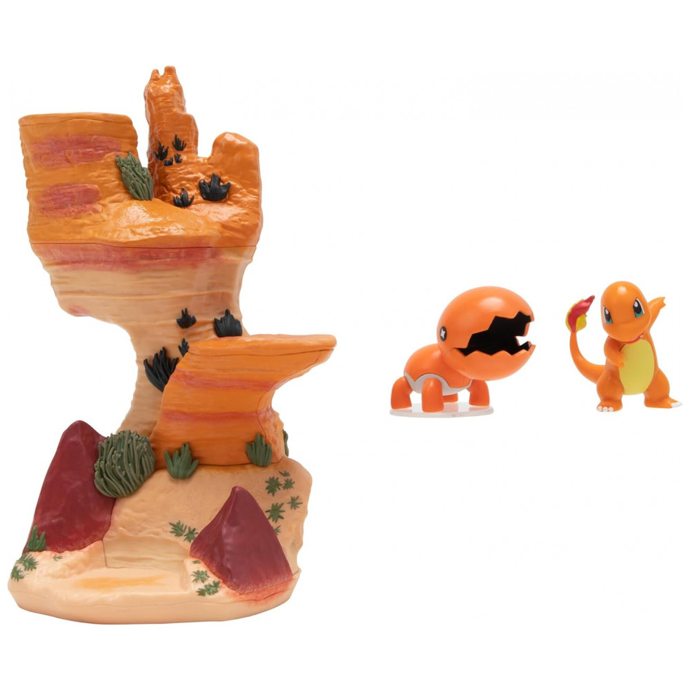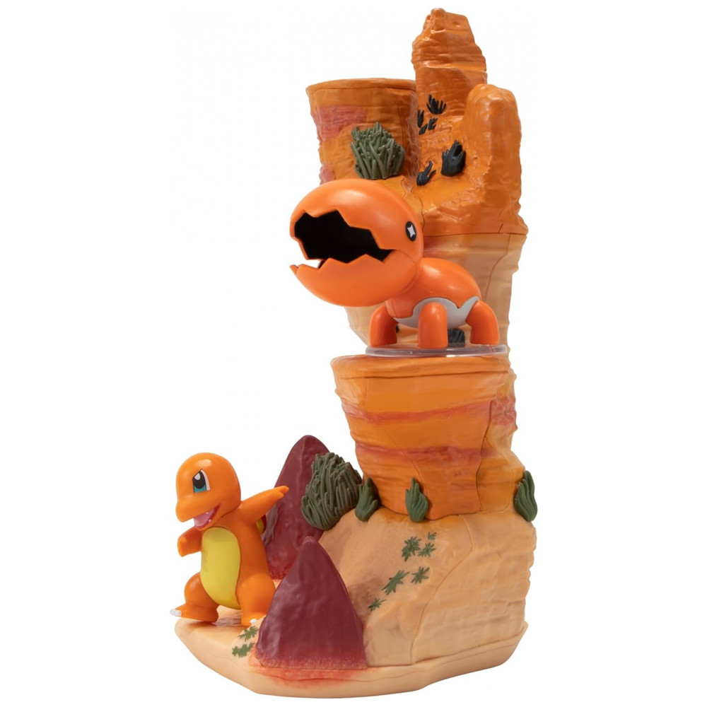 Componentes inclusos: 1 base Pokémon Desert Rocks Environment, 1 figura Trapinch 5 cm, 1 figura Charmander 5 cm