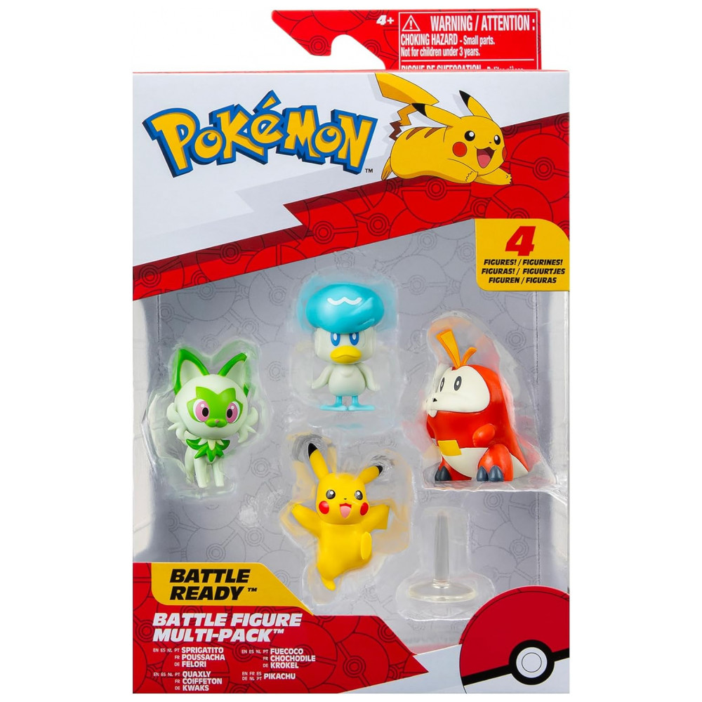 Pokémon Paldea Battle Figure 4 Pack com Pikachu Fuecoco Sprigatito e Quaxly – Figuras de Batalha de 5 cm
