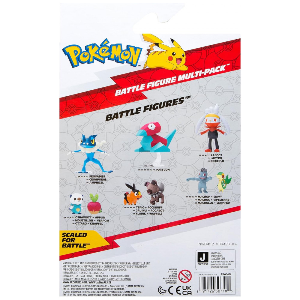 Treine Pokémon da região de Paldea com este incrível Pacote com 4 Figuras de Batalha! Este conjunto inclui os três Pokémon parceiros iniciais de Paldea: Fuecoco, Sprigatito e Quaxly, além do icônico Pikachu. Cada figura mede aproximadamente 5 centímetros e é compatível com os acessórios Clip N Go, Carry Case Playset e o jogo Surprise Attack, vendidos separadamente. As figuras possuem detalhes autênticos que parecem ter saído diretamente da Série Animada Pokémon, proporcionando uma experiência imersiva para colecionadores e fãs. Adicione esses Pokémon ao seu time para se preparar para emocionantes batalhas. Produto oficial licenciado pela Jazwares, indicado para crianças a partir de 4 anos.