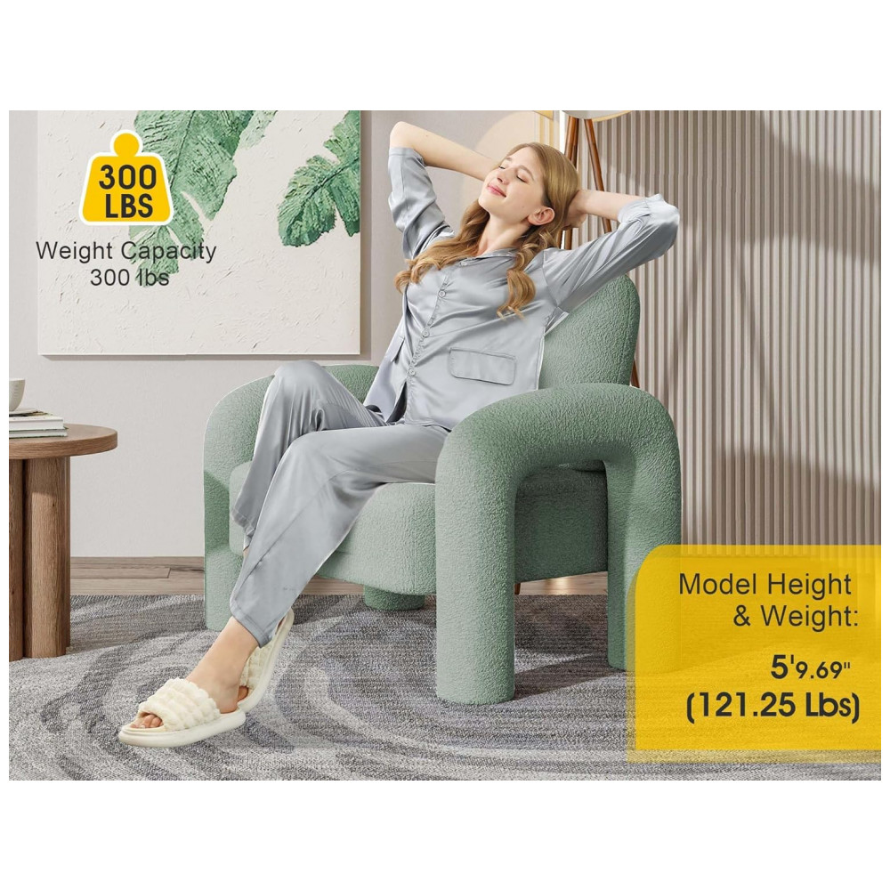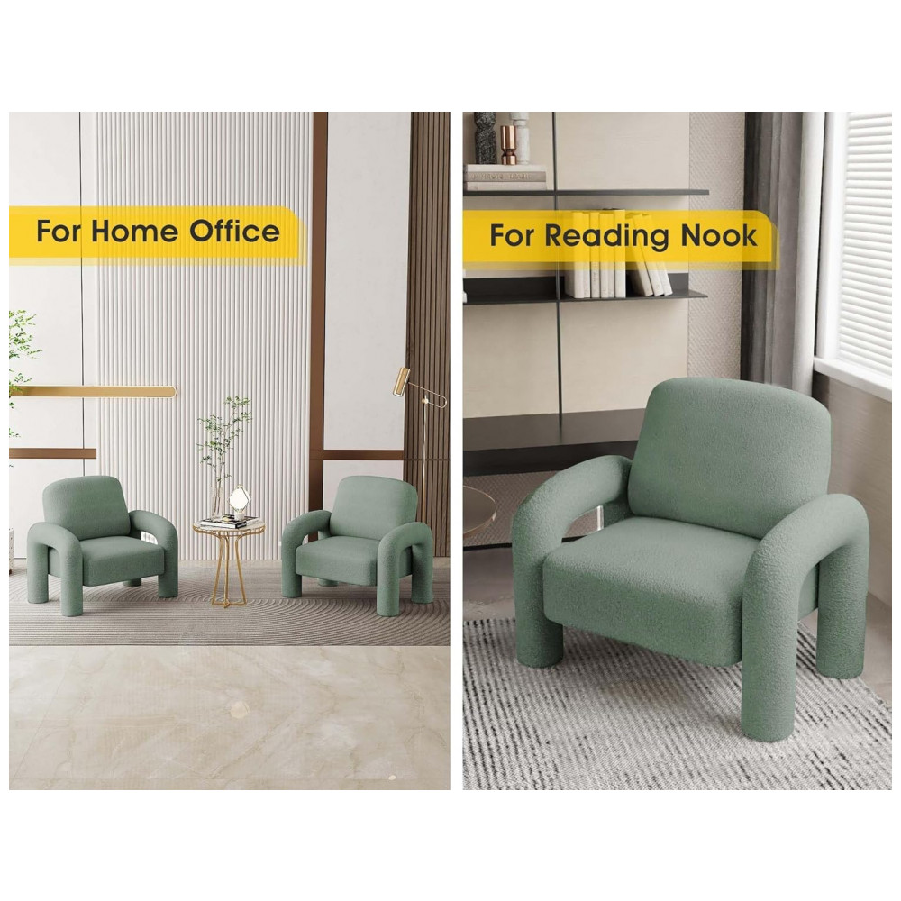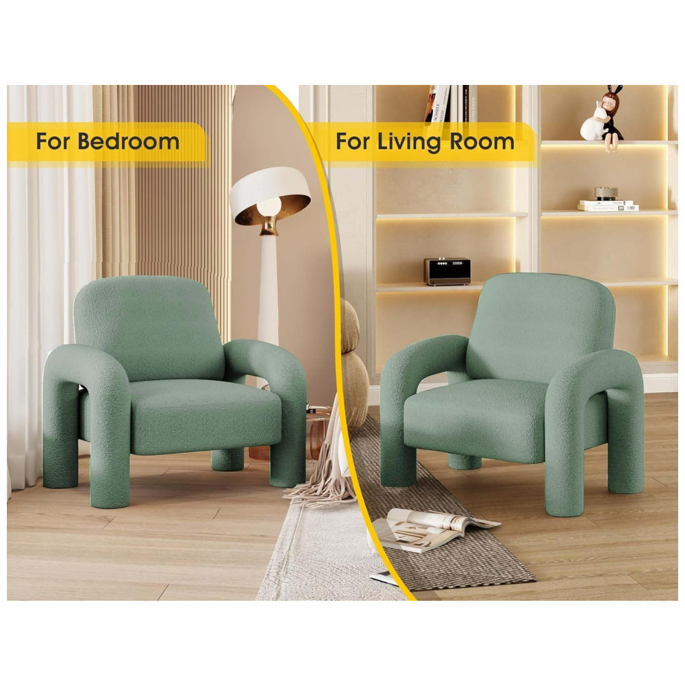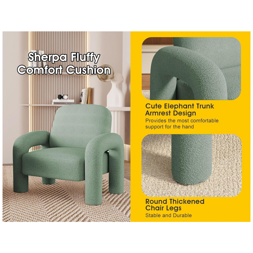 Poltrona Dewhut em tecido sherpa verde cadeira decorativa estofada com braços curvos tipo tromba de elefante