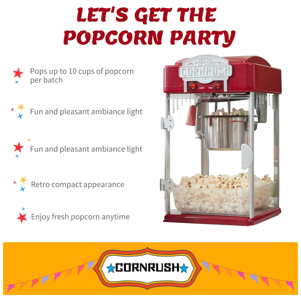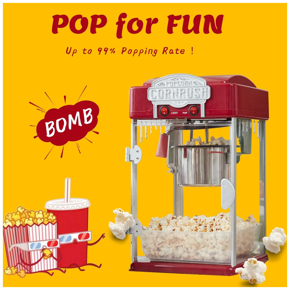 Popcorn Popper Máquina de Pipoca Vintage com Panela Antiaderente Vermelha