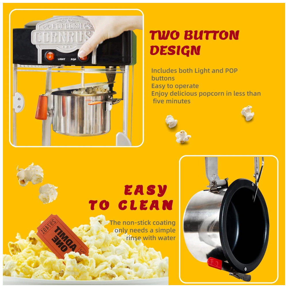 Fácil de limpar bandeja de pipoca removível conveniente e chaleira de aço inoxidável e apenas limpe com um pano macio.