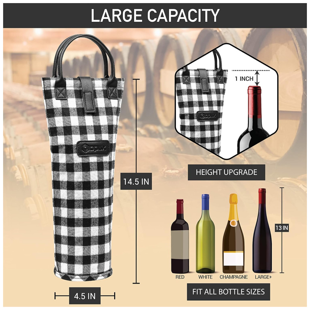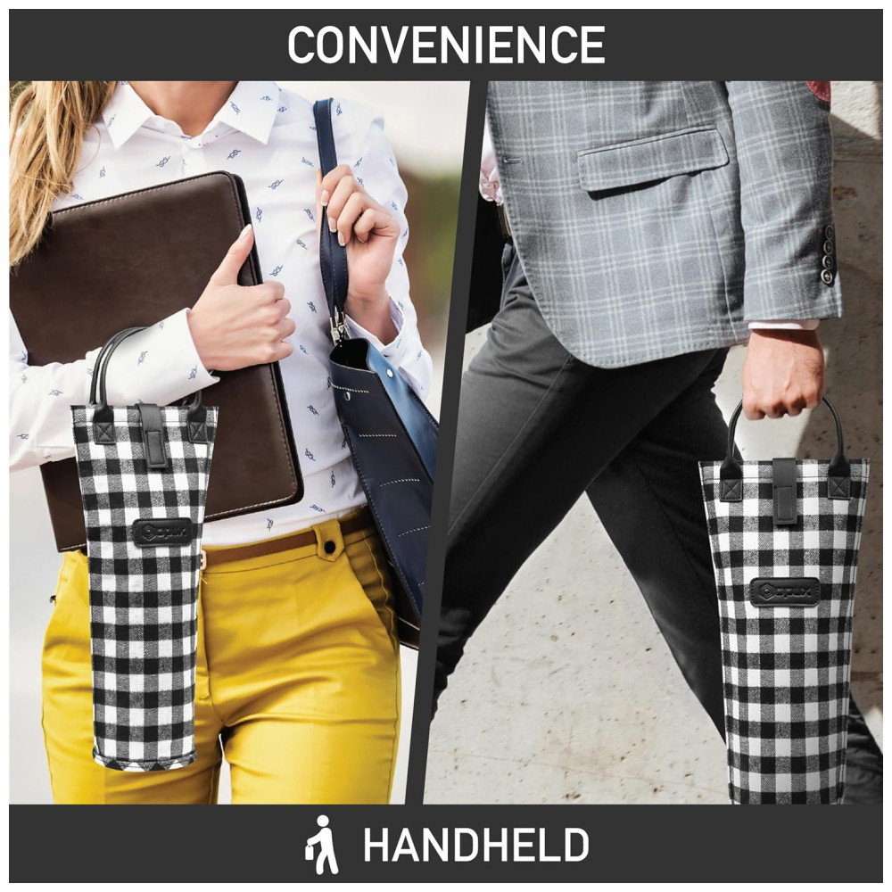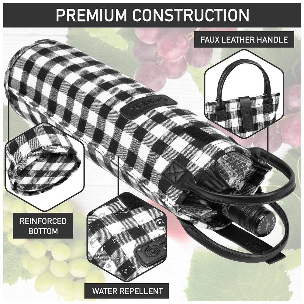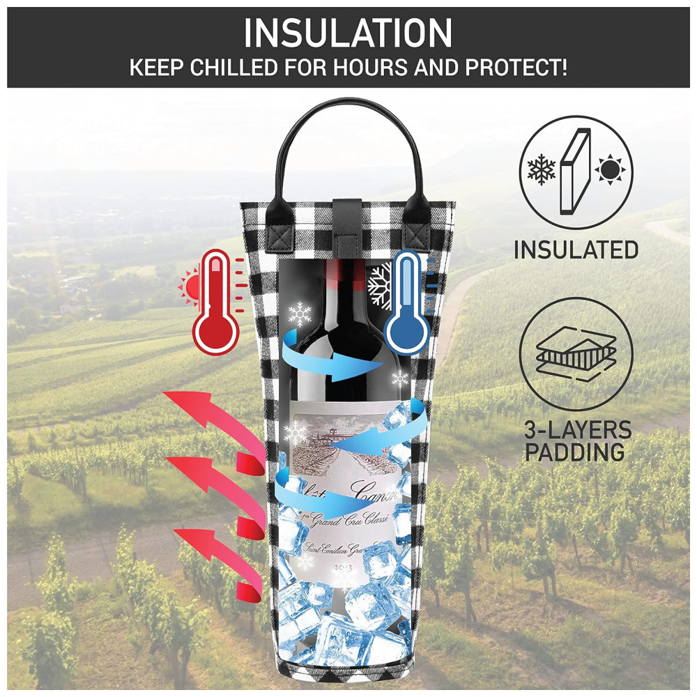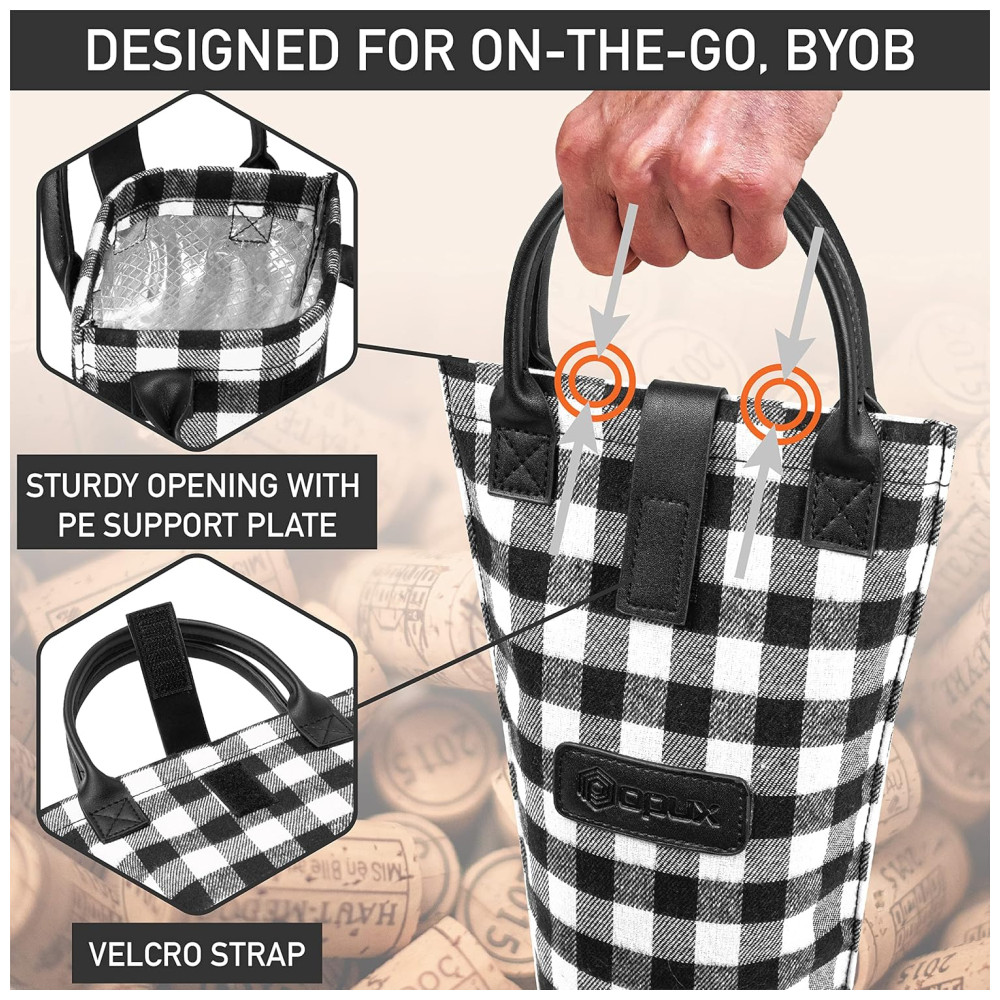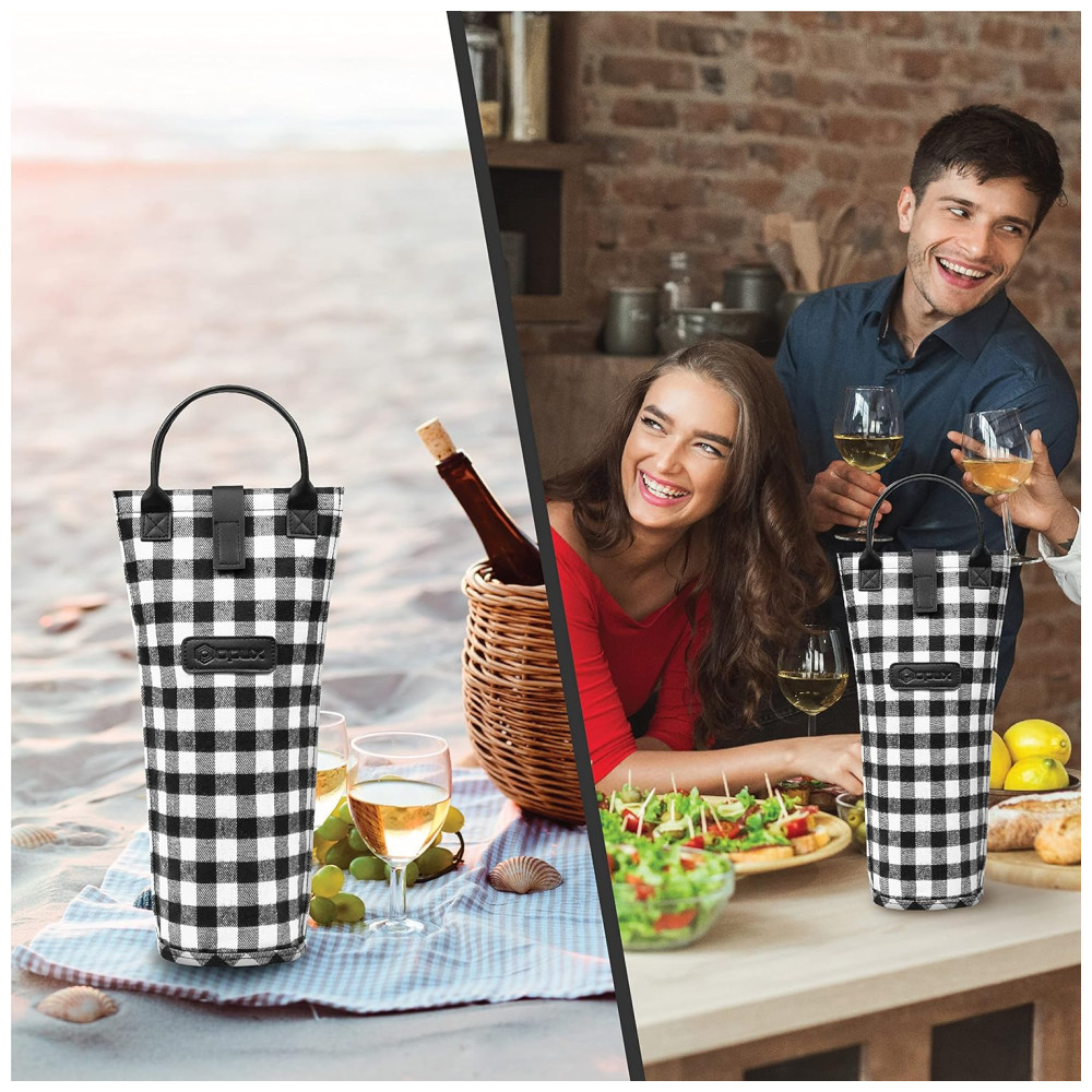 Porta-Garrafa Térmico OPUX para 1 Garrafa de Vinho Transporte Isolado para Piquenique e Praia Elegante Presente para Amantes de Vinho – Xadrez