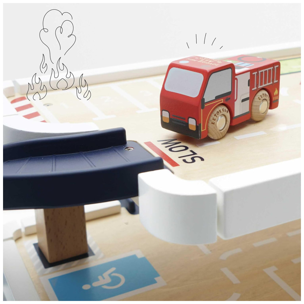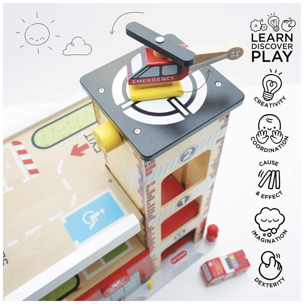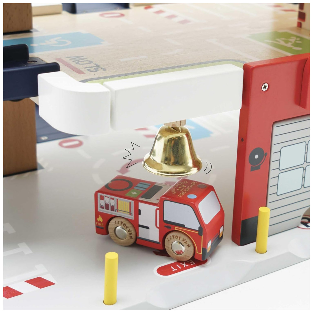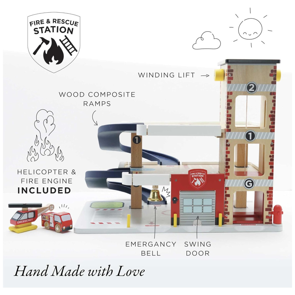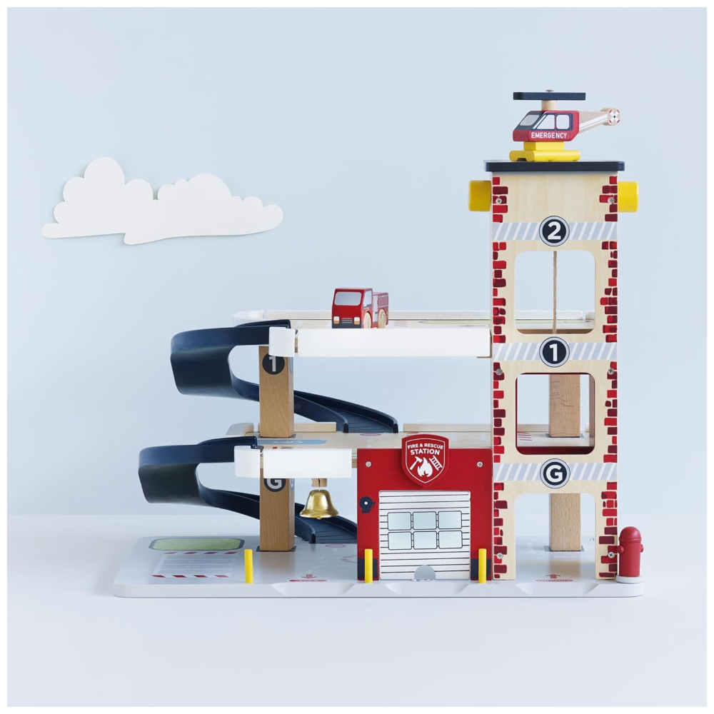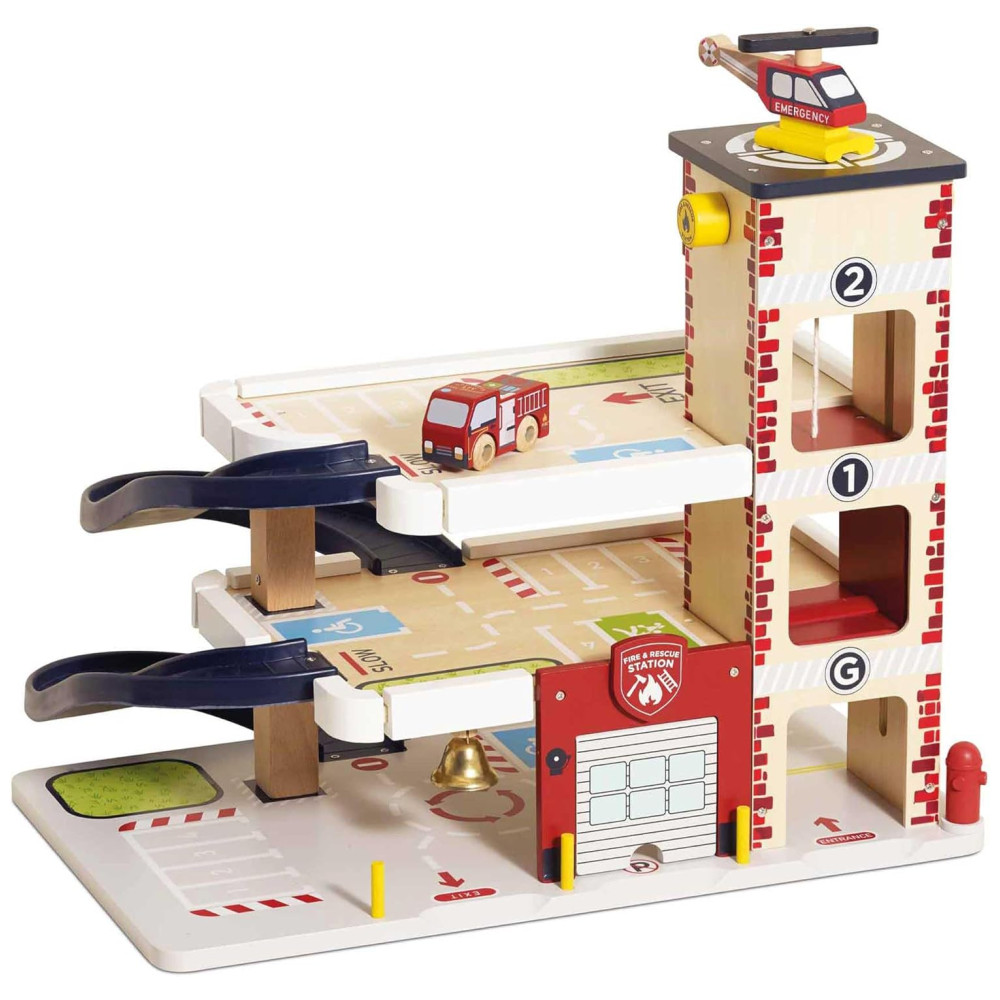 Posto de Bombeiros de Madeira com Rampa em Espiral 3 Andares e Acessórios para Crianças com 3 Anos ou Mais Le Toy Van