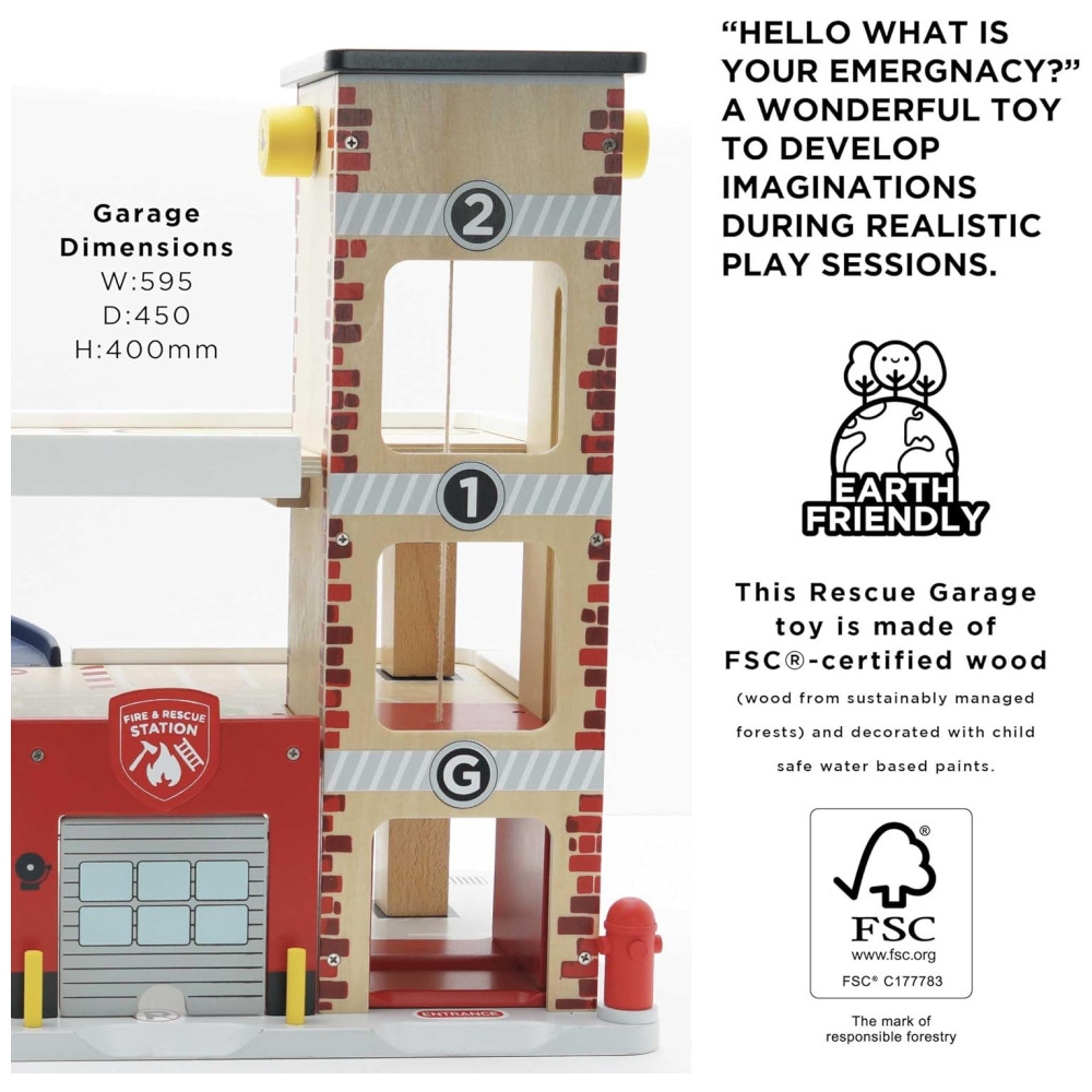 Seguro, de Alta Qualidade e Proveniente de Florestas Sustentáveis: Decorado com tintas não tóxicas à base de água, resistentes a lascas e testado de acordo com os mais altos padrões de segurança. Este conjunto de garagem de incêndio e resgate, com carro de bombeiros e helicóptero exclusivos, é um brinquedo ideal para despertar a imaginação das crianças.