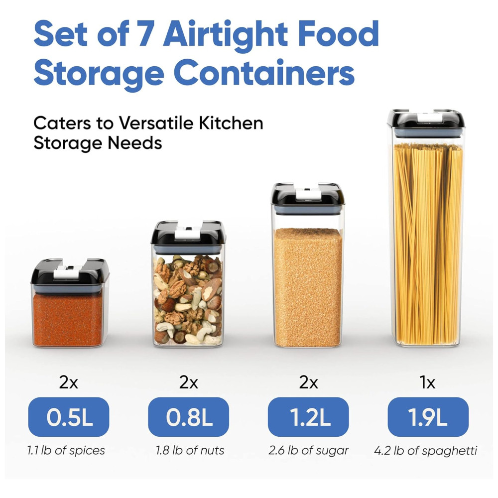 Potes Herméticos para Alimentos 0.5 2 L Quadrado 7 Unidades preto CHEFS PATH Preto