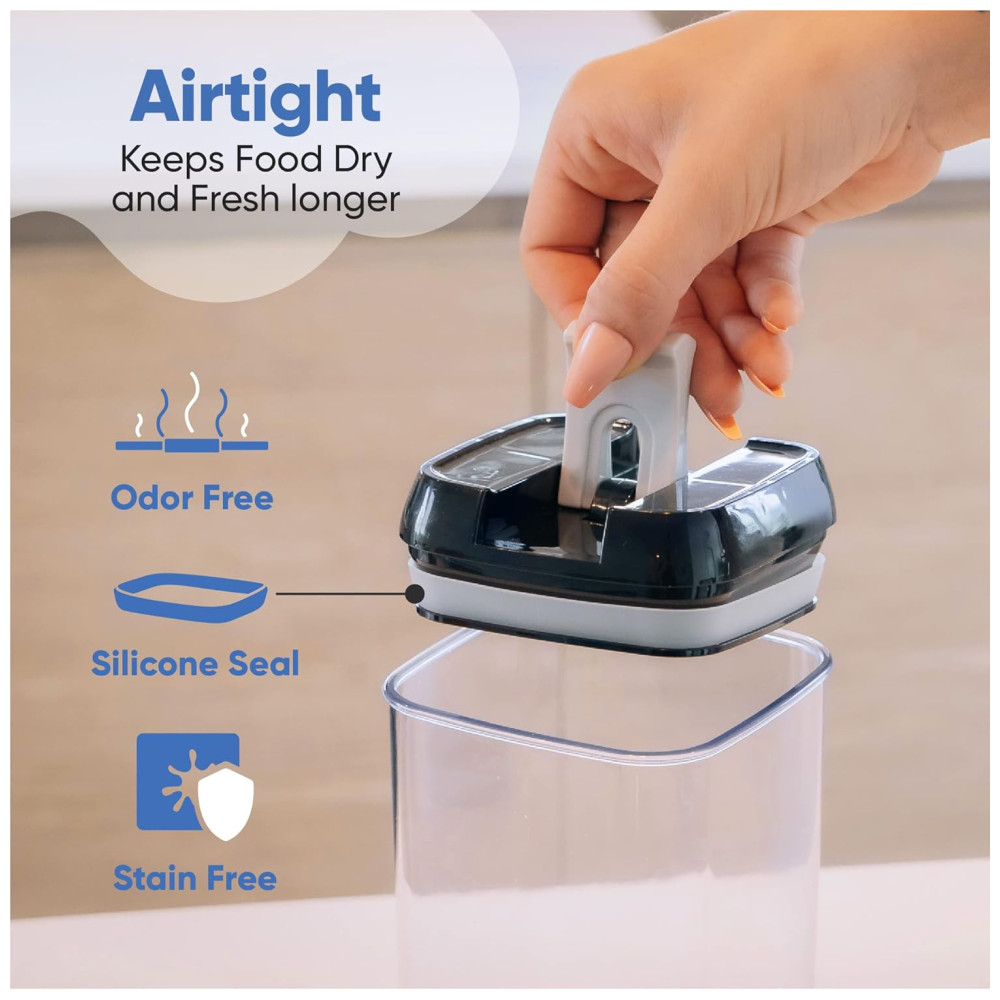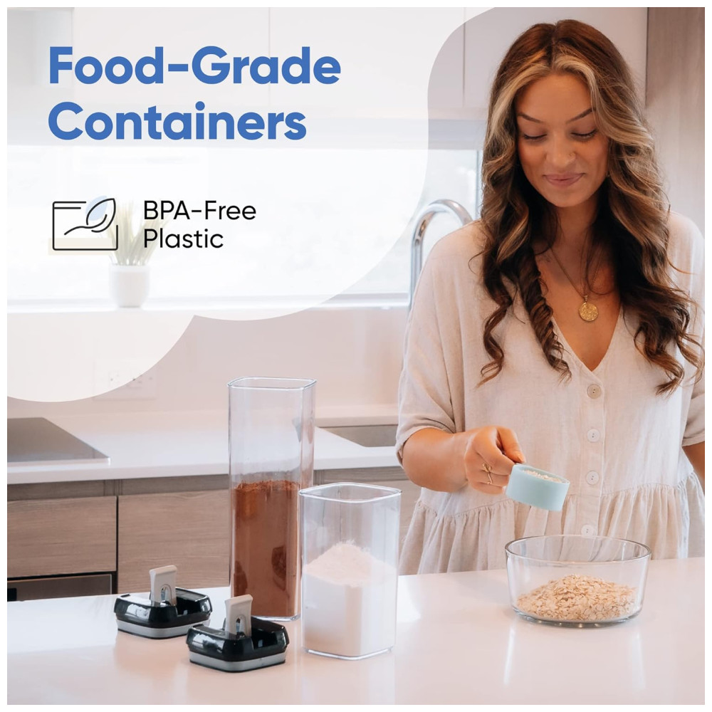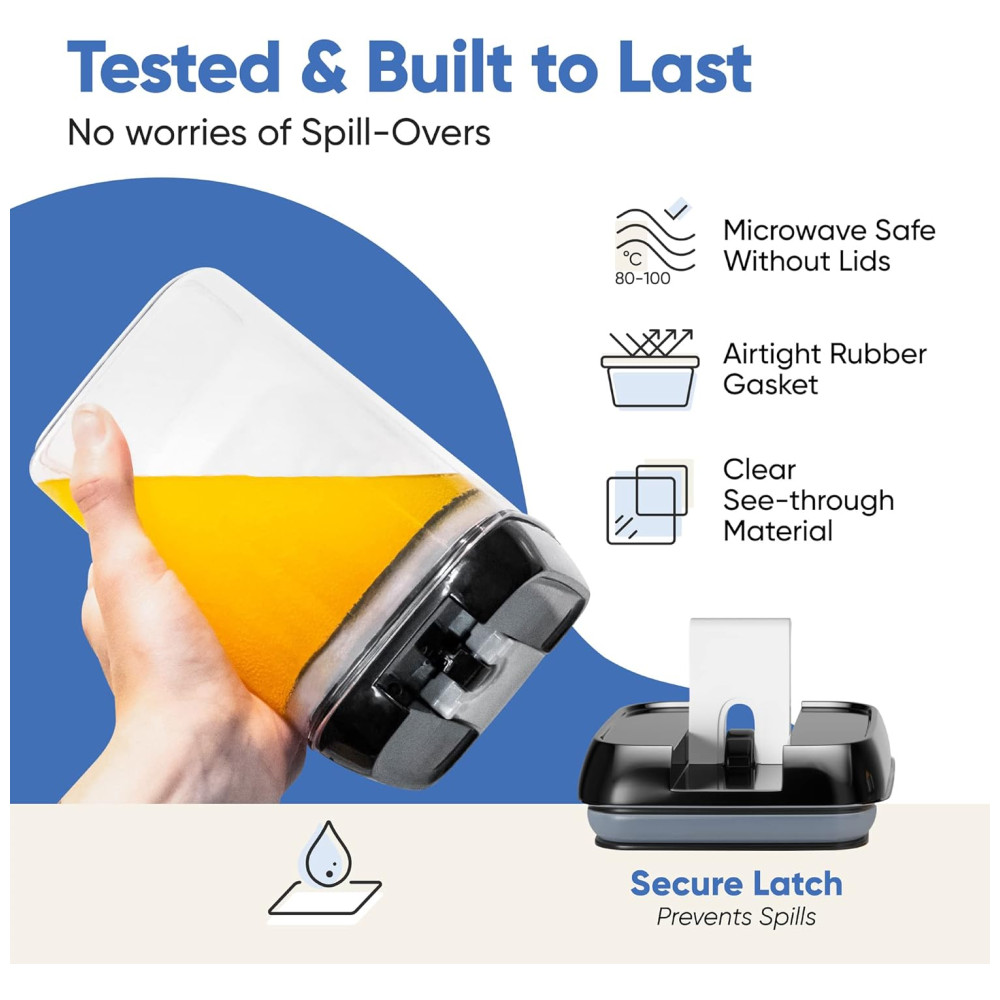 RECIPIENTES VERSÁTEIS Esses protetores herméticos e s para alimentos não são apenas ideais para zenar alimentos secos, como farinha, açúcar, arroz, grãos, cereais, nozes, feijão, salgadinhos, massas, espaguete, macarrão, café e chá e também são PERFEITOS para conter líquidos como água, suco, sopa e muito mais. Não há necessidade de se preocupar com o derramamento de líquidos, basta empurrar a alça para baixo e deixar a tecnologia hermética fazer a mágica