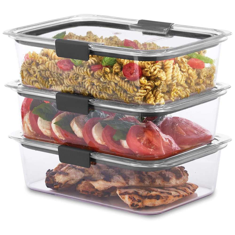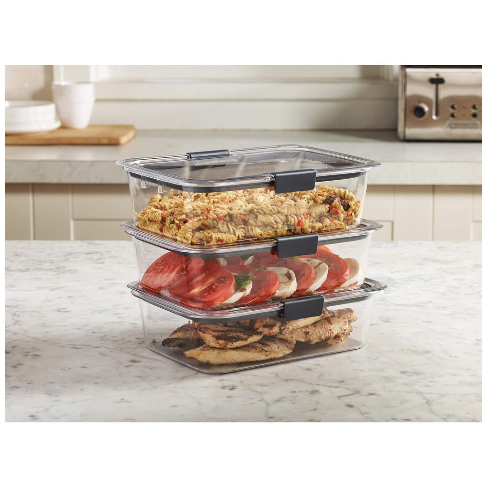 Os recipientes de zenamento de alimentos Rubbermaid Brilliance 100 à prova de vazamentos apresentam tampas e bases Tritan sem BPA com clareza de 360 graus vedação hermética e travas seguras evitam derramamentos e vazamentos e ajudam a manter os alimentos frescos e s