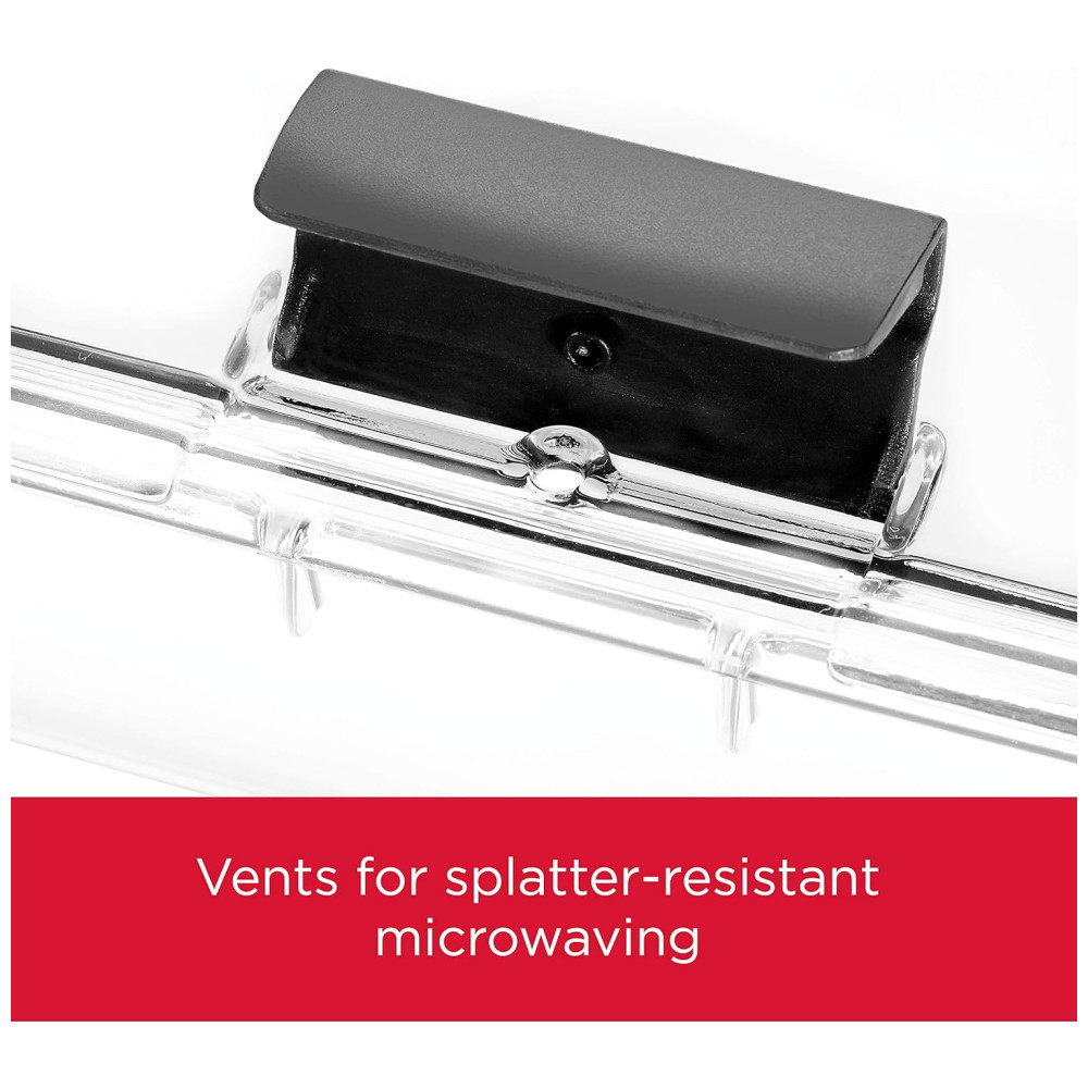 Os recipientes de plástico Brilliance possuem aberturas sob as travas que permitem o reaquecimento de micro ondas resistente a respingos com a tampa
