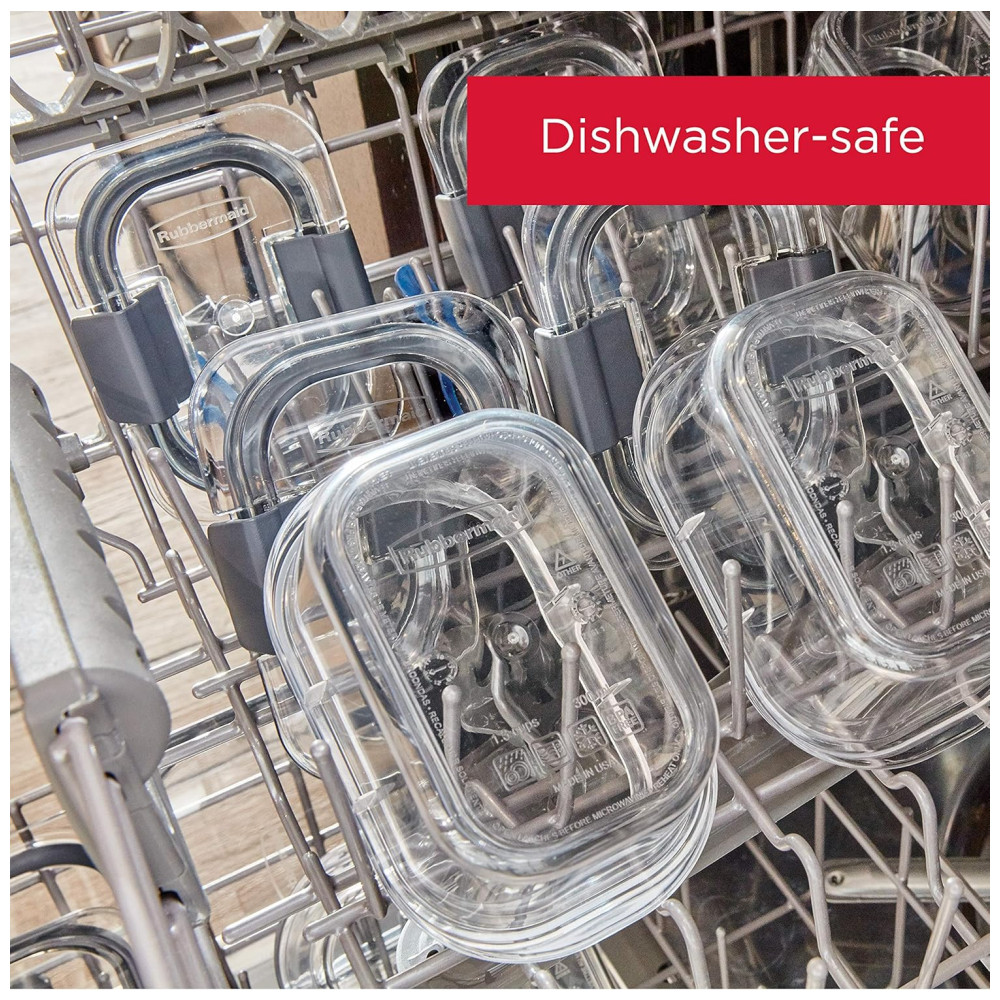 Os recipientes de zenamento de alimentos Rubbermaid Brilliance 100 por cento à prova de vazamentos apresentam plástico Tritan transparente e sem BPA que oferece uma clareza de 360 graus e ajuda a manter os alimentos frescos e s
